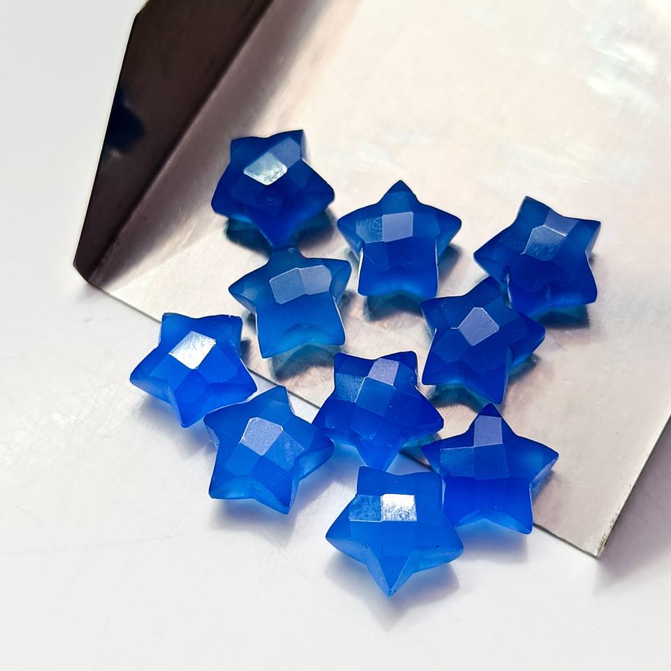 Product name:Blue Chalcedony Faceted Star Carved Beads