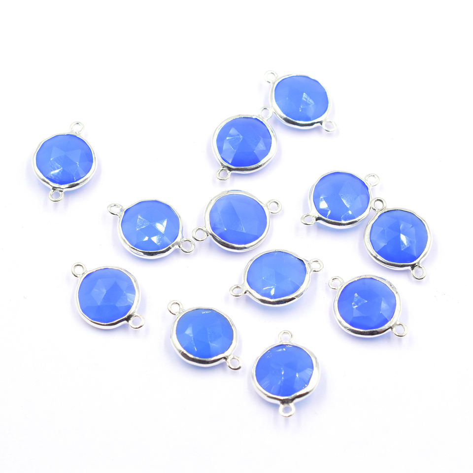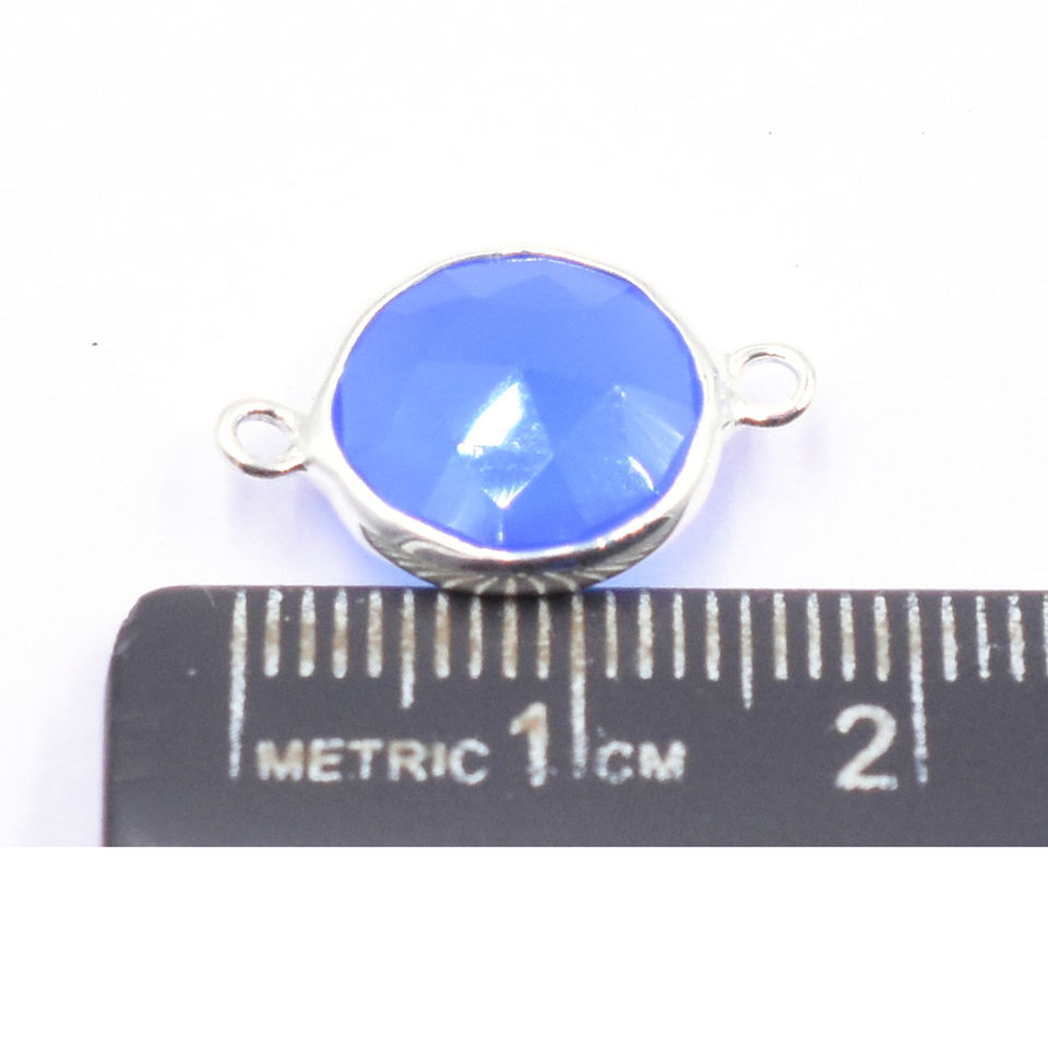 Product Name:Blue Chalcedony Round Shape Silver Bezel Silver Plated Connector