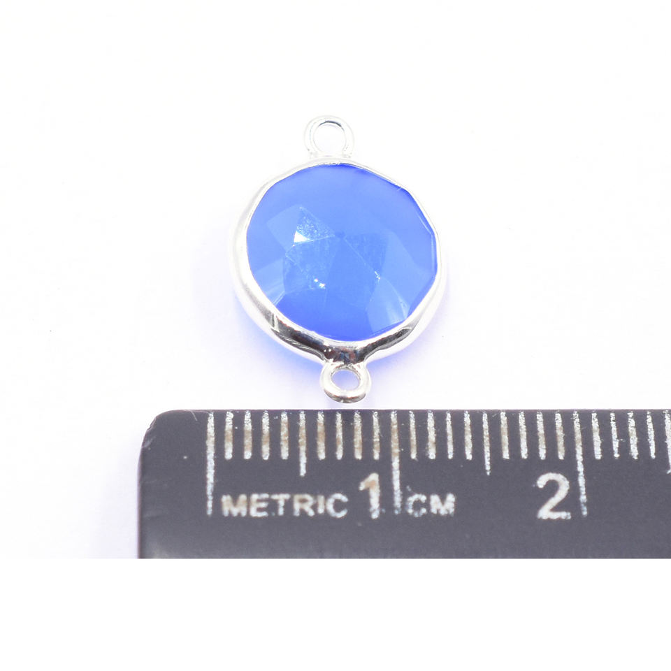 Blue Chalcedony Round Shape Silver Bezel Silver Plated Connector