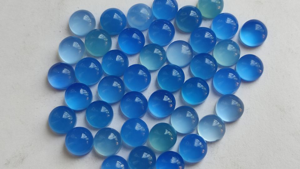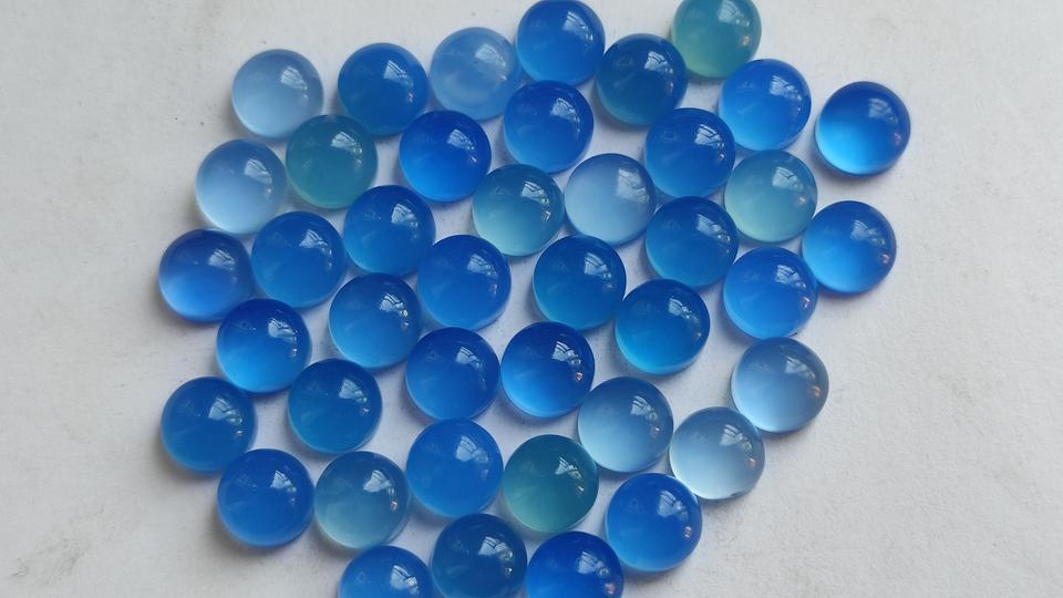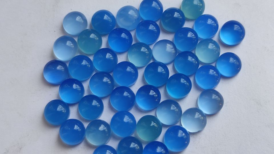 พลอยคาลซิโดนีทรงกลมพลอยคาลซิโดนีหลังแบน4มม. หินธรรมชาติหินควอตซ์สีฟ้าหลวม