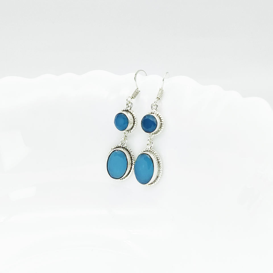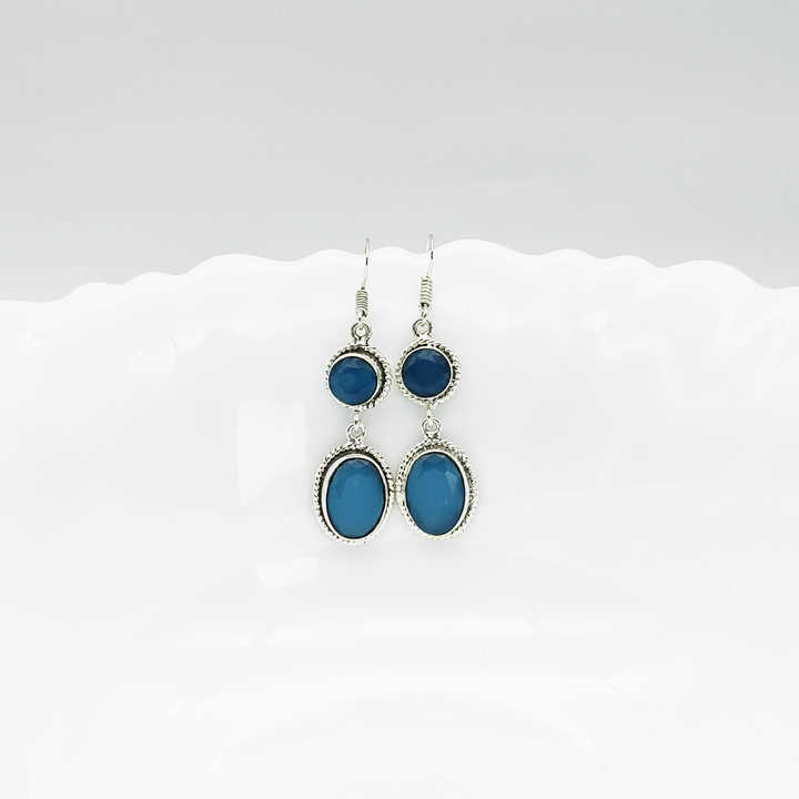 ต่างหูห้อยประดับบลูแคลซิโดนีเงินออกซิไดซ์ | ต่างหูเงินแท้ 925 ประดับพลอยธรรมชาติ สำหรับผู้ค้าส่ง