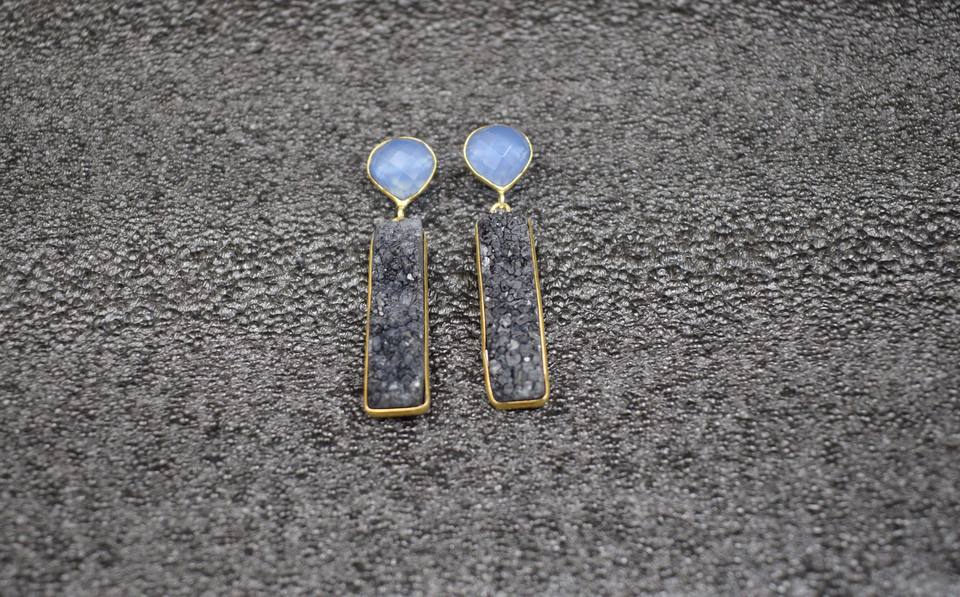 วัสดุ:พลอยคาลซิโดนีสีน้ำเงินพร้อมรายได้ชุบทองดรูซี่สีดำ