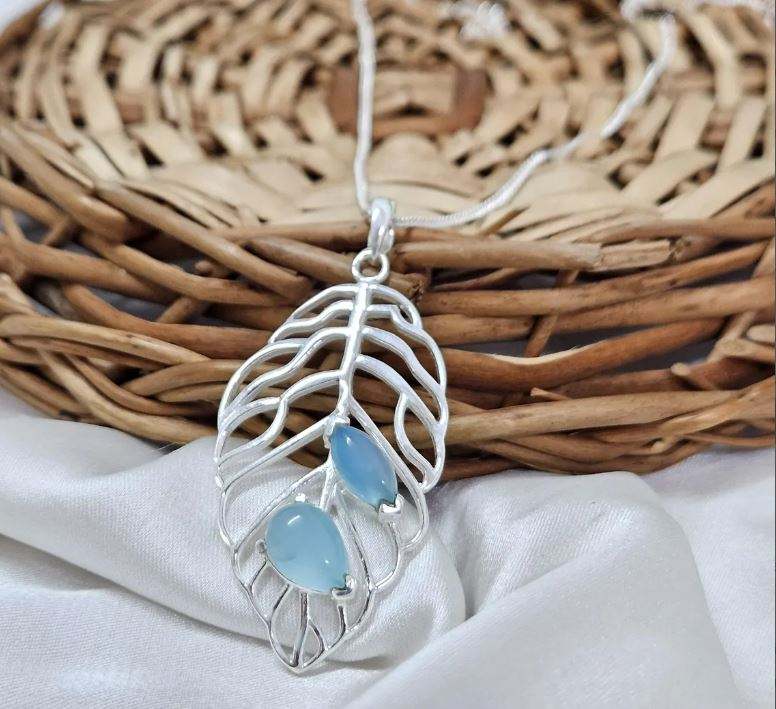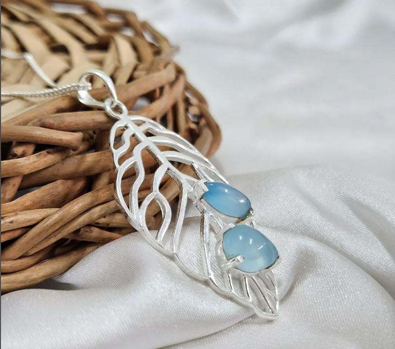 จี้หินคาลซิโดนีสีฟ้าประดับอัญมณีสีเงินหลายรูปทรง