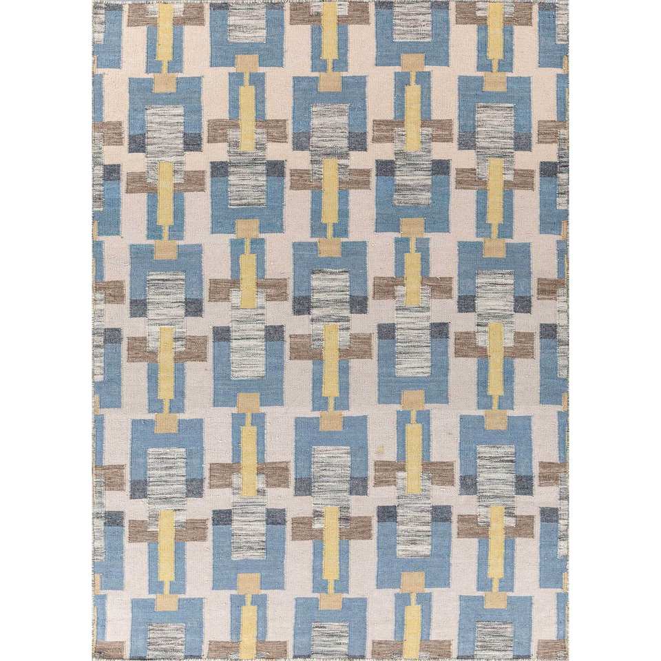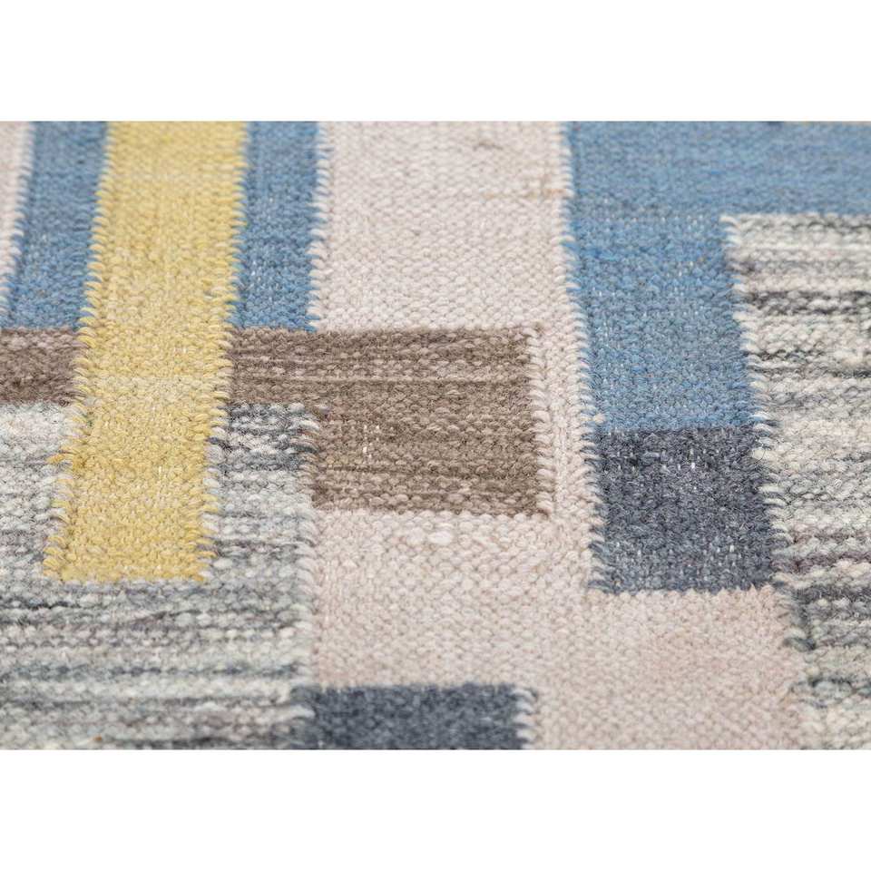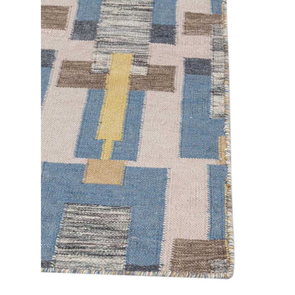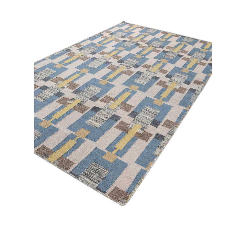 พรมขนสัตว์ทำมือลายตารางสีน้ำเงิน ทอลายเรียบ รูปแบบเรขาคณิต สำหรับตกแต่งบ้าน ห้องนั่งเล่น ADWL-13133 สำหรับวัยรุ่น