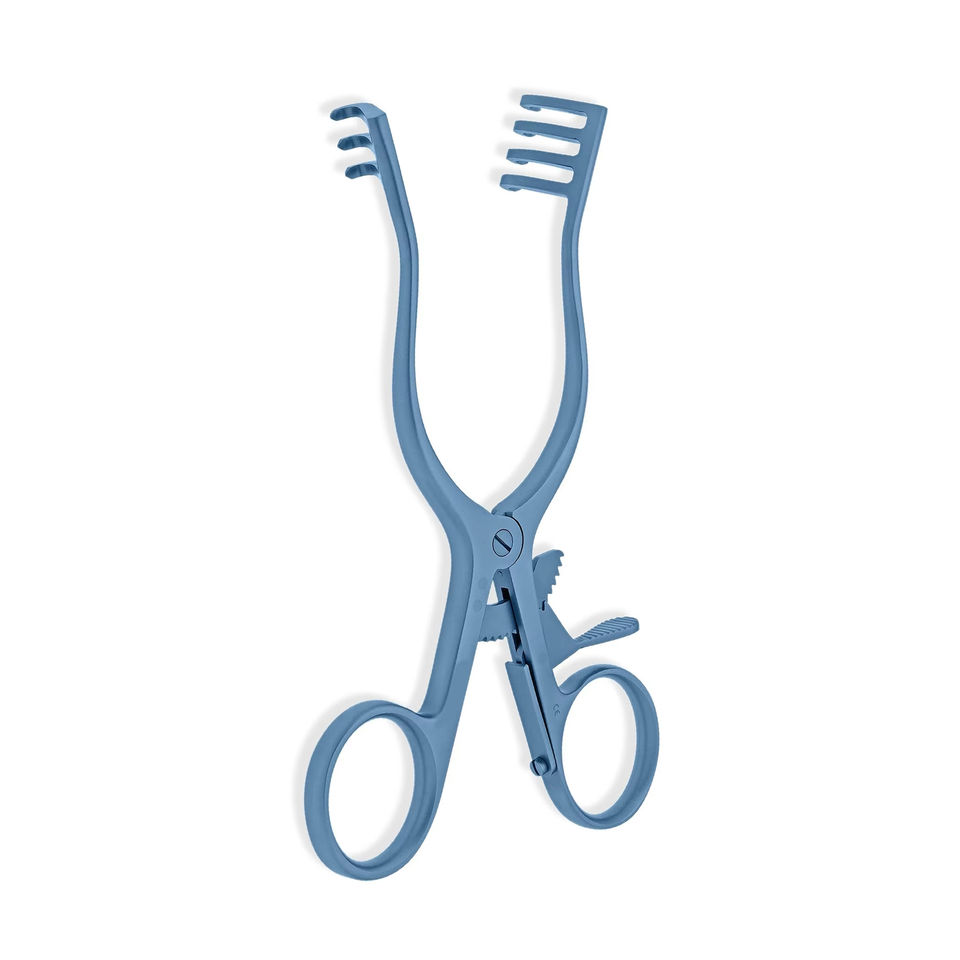 Blue Coated Weitlaner Self-Retaining Retractor with 3x4 Blunt Prongs for Safe Soft Tissue Retraction