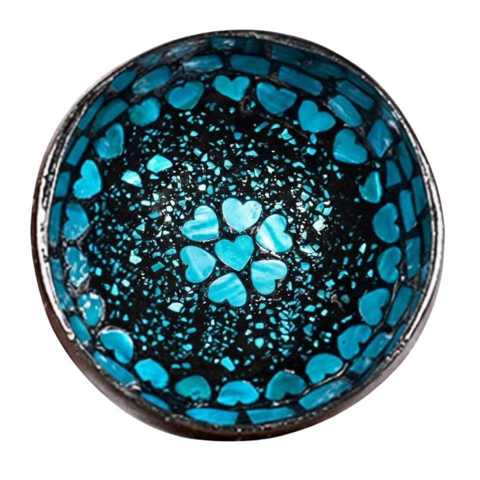 ชามเปลือกมะพร้าวสีน้ำเงิน ประดับมุกธรรมชาติ เป็นมิตรกับสิ่งแวดล้อม ชามใส่ขนมมะพร้าว ทำด้วยมือ ราคาดีที่สุด คุณภาพสูง