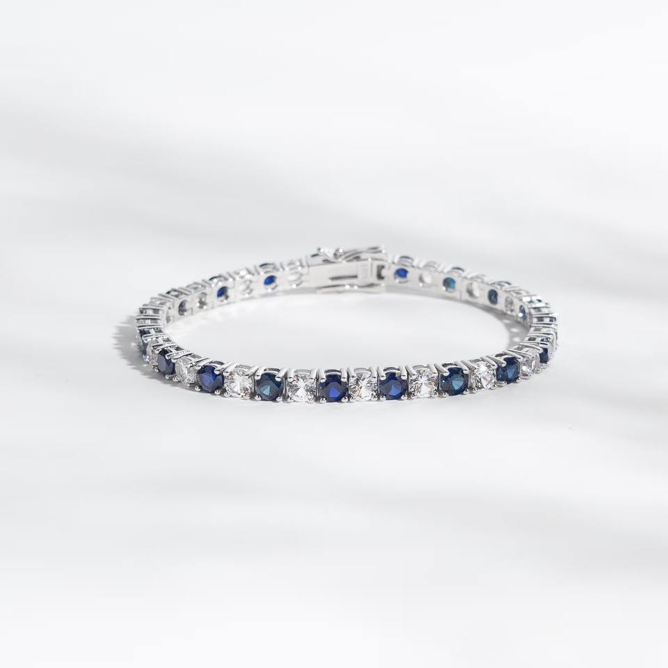 กำไลข้อมือเพชรโมอิสซาไนต์สีน้ำเงินสลับสี สำหรับผู้หญิง แฟชั่นเงินแท้ 925 เครื่องประดับมินิมอล ราคาขายส่ง