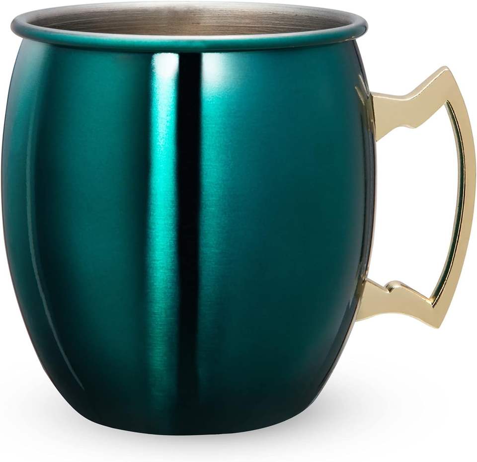 แก้วมักสแตนเลสขนาด16ออนซ์พร้อมขอบสีทองเรียบและด้ามจับดีไซน์แบบมอสโกมิวดีไซน์หรูทันสมัย