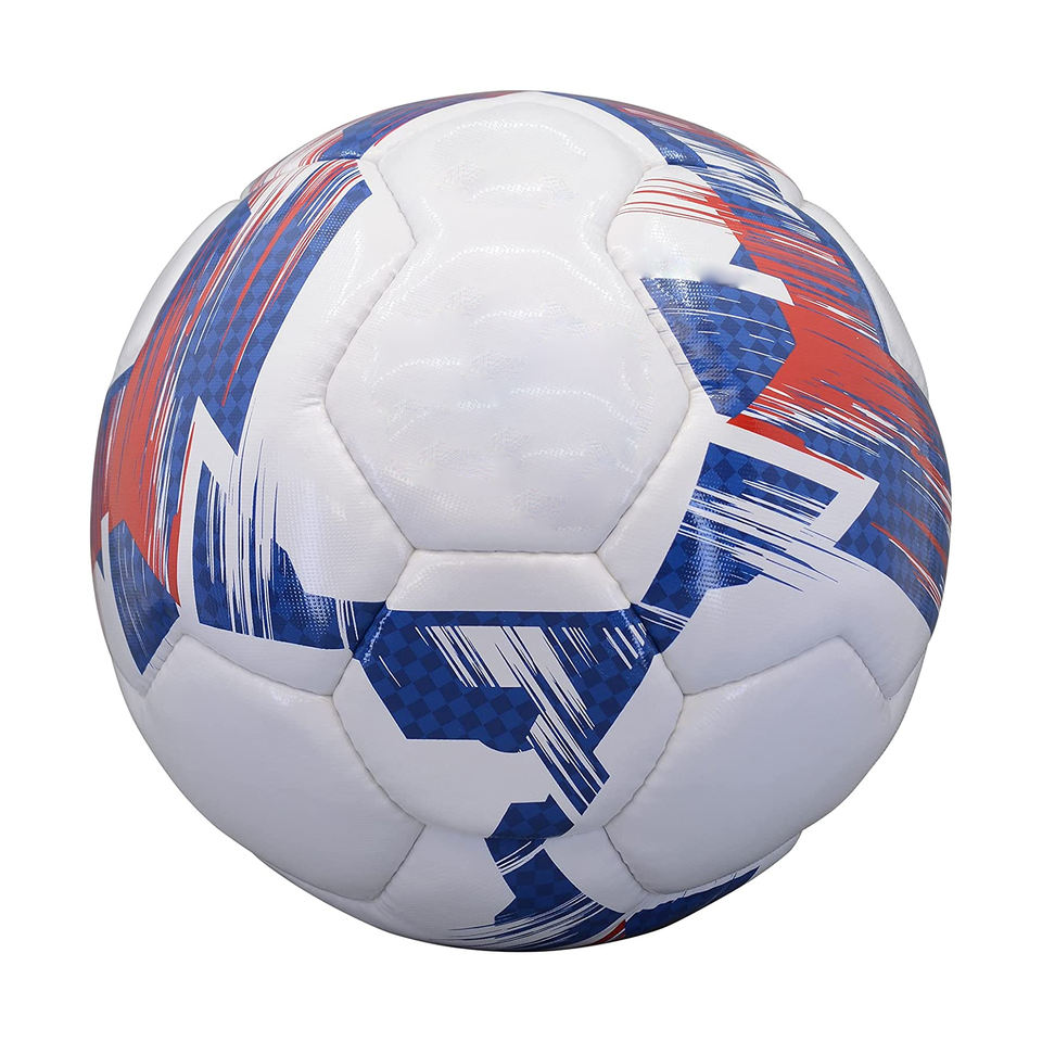 สีฟ้าพิมพ์ลูกฟุตบอลที่กำหนดเองที่มีคุณภาพที่ดีที่สุดลูกฟุตบอลขนาดมาตรฐานที่กำหนดเองฟุตบอลอุปกรณ์กีฬา