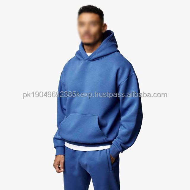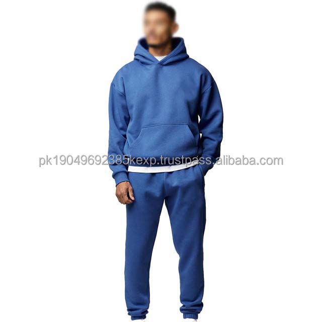 ชุดวอร์มผู้ชายสีน้ำเงิน ผ้าฝ้ายฟลีซ ชุดกีฬา ชุดออกกำลังกายและวิ่ง ชุดวอร์ม 2 ชิ้น เสื้อฮู้ดดี้และกางเกงจ็อกเกอร์