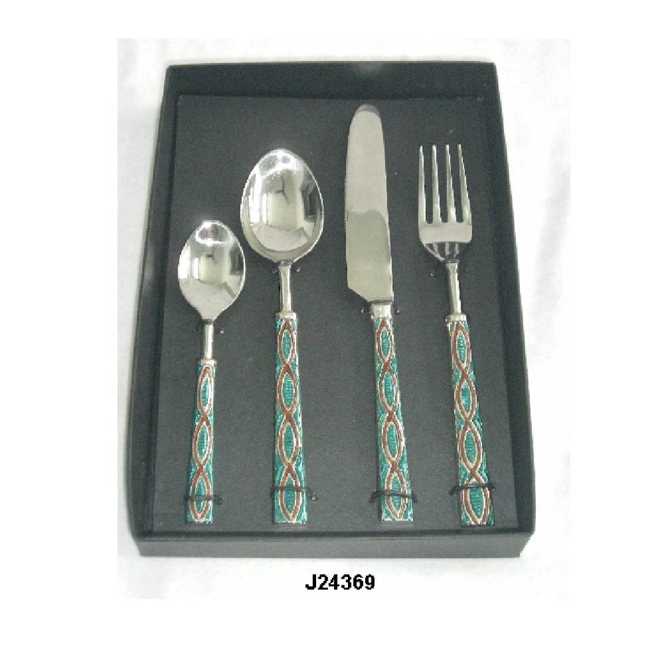 ชุดช้อนส้อมสแตนเลสสตีล ด้ามเรซิ่นสีน้ำเงิน แบบตะวันออก ขัดเงาเหมือนกระจก สำหรับใช้ในโรงแรมและที่บ้าน