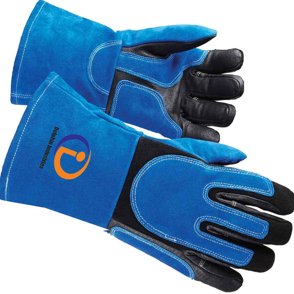 ถุงมือเชื่อมโอเอ็มสำหรับเยาวชนถุงมือเชื่อมสีฟ้าทำจากหนังวัวดีไซน์ตามสั่ง