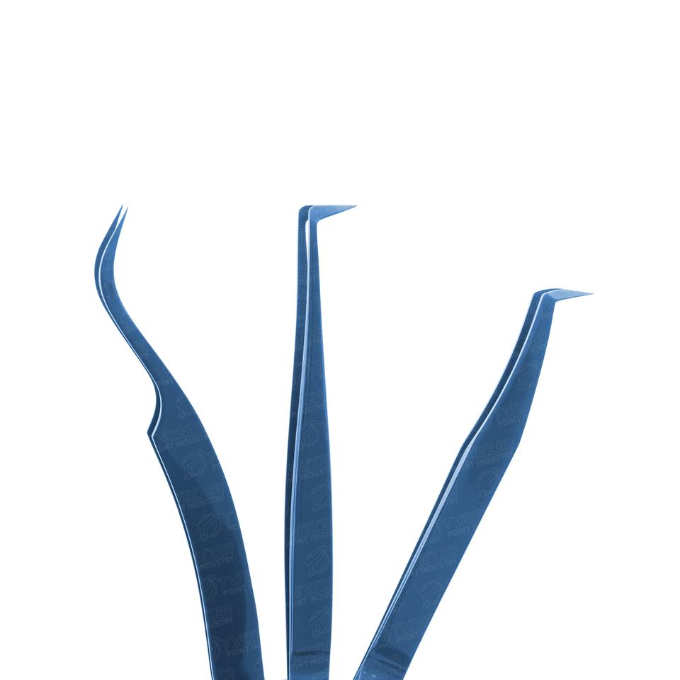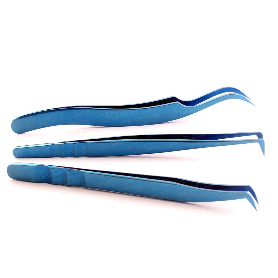 แหนบต่อขนตาสีฟ้า คุณภาพเยี่ยม สแตนเลสสตีล ป้องกันไฟฟ้าสถิต ทนทาน แม่นยำ น้ำหนักเบา สำหรับร้านเสริมสวย