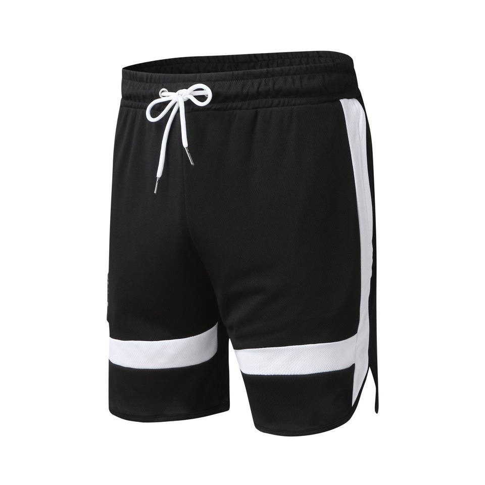 กางเกงขาสั้นตาข่ายสีฟ้าตัดกันดีไซน์ตามสั่งกางเกงกีฬาแห้งเร็วระบายอากาศได้ดีสำหรับฤดูร้อนจัดส่งแบบ DP