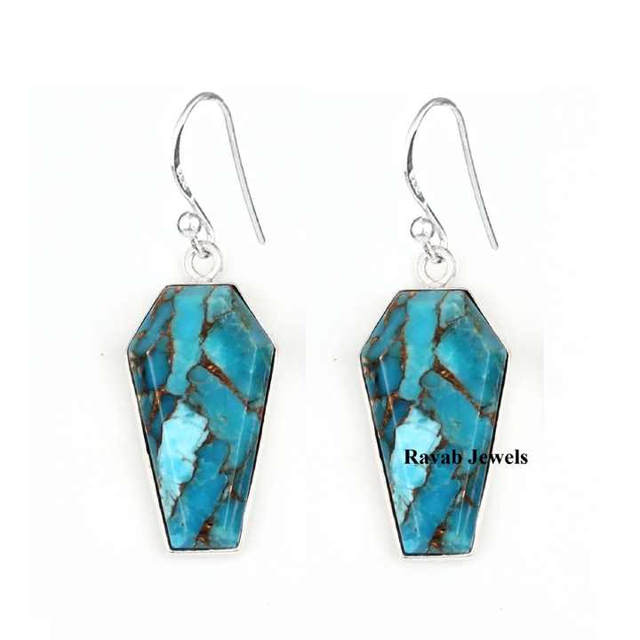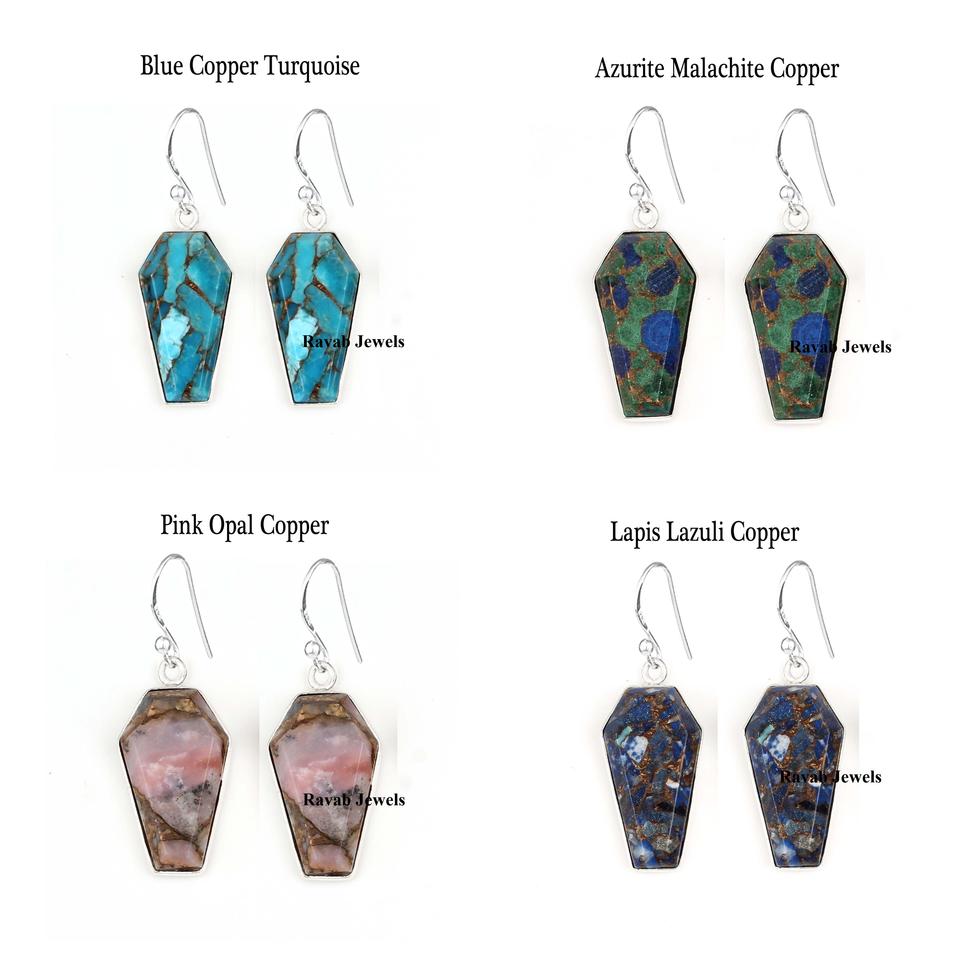 หอยนางรมสีฟ้าสีทองแดงสีฟ้า10X17มม. แข็ง925เงินต่างหูห้อยรูปทรงโลงศพสวยงานแต่งงาน/งานเลี้ยง
