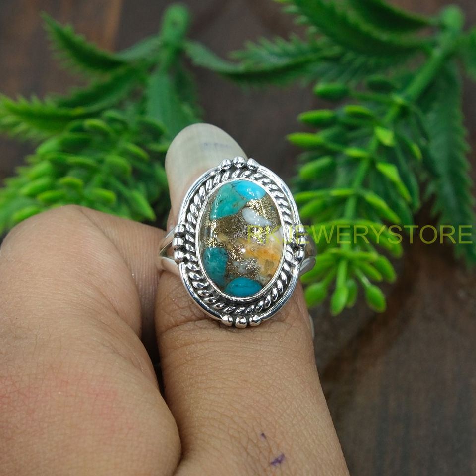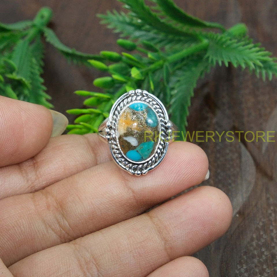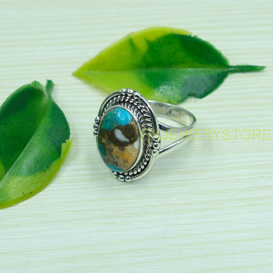 แหวนพลอยสีฟ้าอมเขียว แหวนเงินแท้ 925 ดีไซน์ทำมือสำหรับผู้หญิง เครื่องประดับพลอยสีฟ้าอมเขียว
