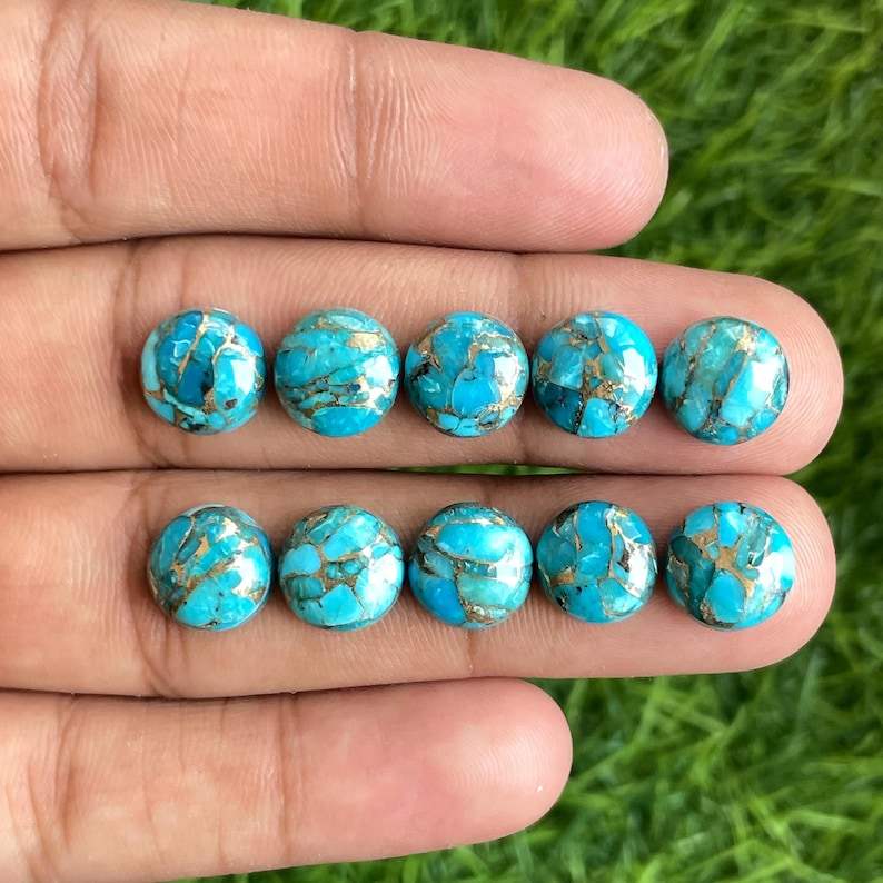 พลอยทองแดงสีฟ้าเทอร์ควอยส์ทรงกลมอัญมณีหลวม10มม. สำหรับทำเครื่องประดับสร้อยข้อมือจี้แหวน