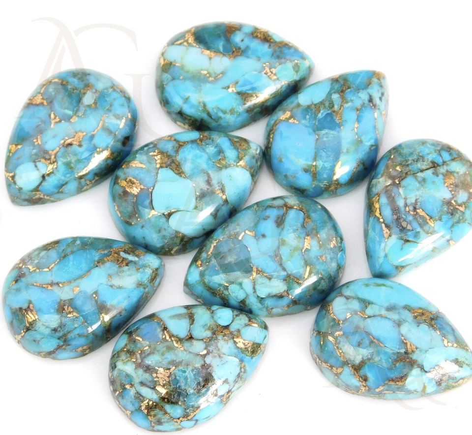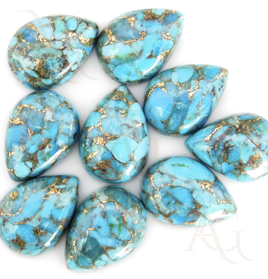 พลอยทองแดงสีฟ้าเทอร์ควอยส์อัญมณีทรงหลังเบี้ยเรียบสำหรับทำเครื่องประดับ