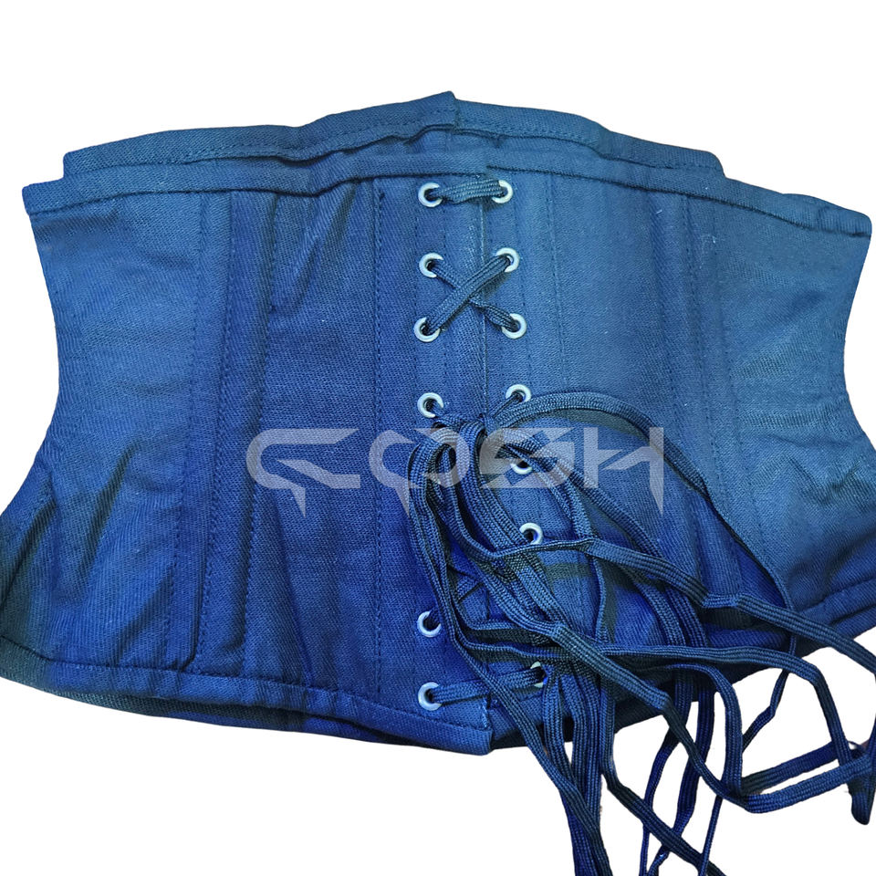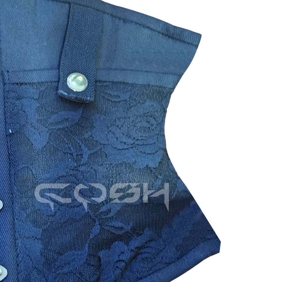 คอร์เซ็ทผ้าฝ้ายสีน้ำเงินลายดอกไม้ แต่งลูกไม้ พร้อมโครงเหล็กและตัวล็อคด้านหน้า | ชุดกระชับสัดส่วนแบบโกธิค