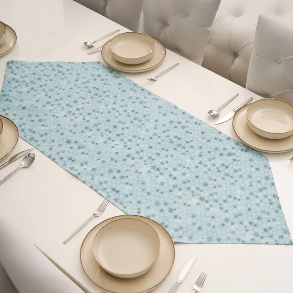 ผ้าปูโต๊ะผ้าฝ้ายสีฟ้าลายพิมพ์หิมะแบบถักทอแบบหรูหรามุมสามเหลี่ยมขนาด40X140สำหรับบ้านโรงแรมงานแต่งงาน