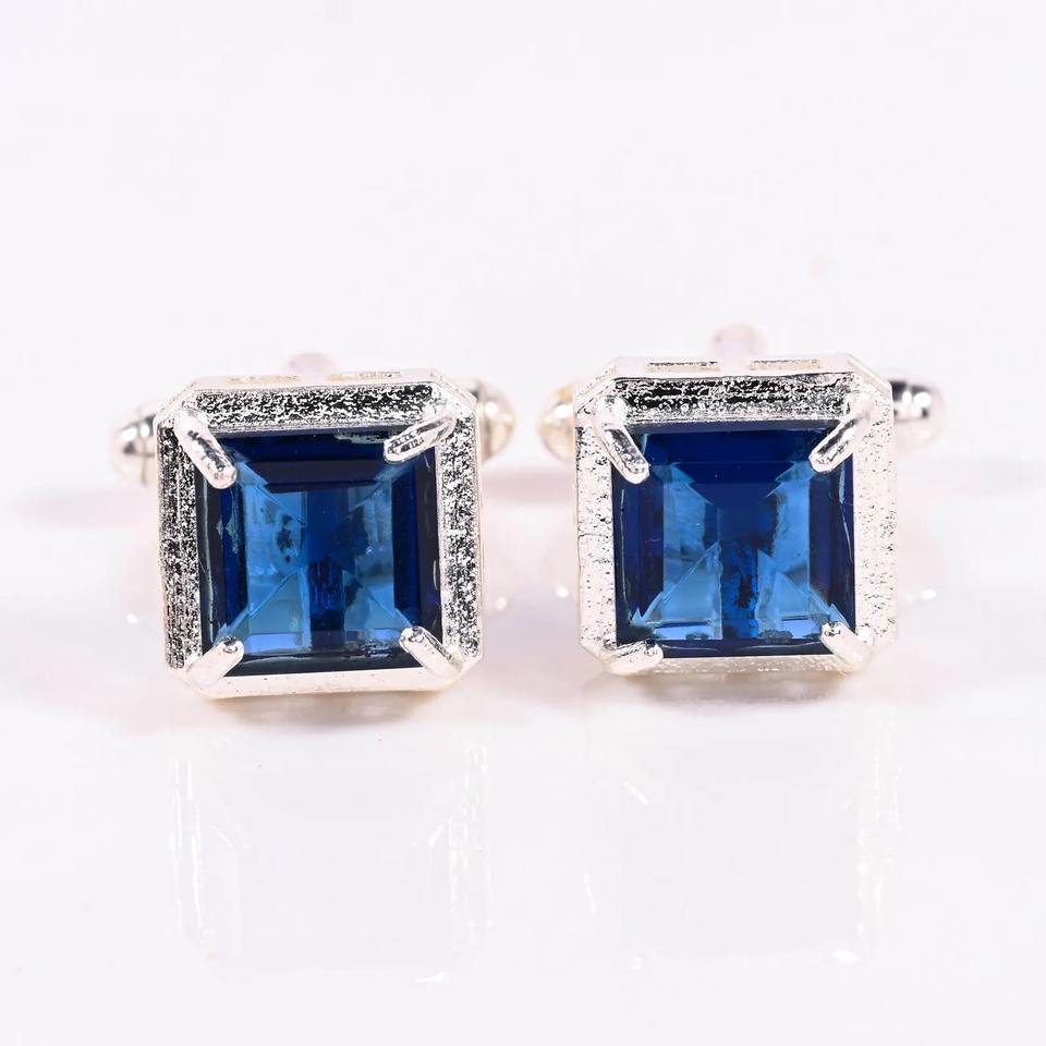 กระดุมข้อมือคริสตัลสีน้ำเงิน โทนสีเงิน สำหรับผู้ชาย เครื่องประดับสำหรับชุดทางการ งานแต่งงาน ชุดสูทธุรกิจ ขายส่งสำหรับเป็นของขวัญ
