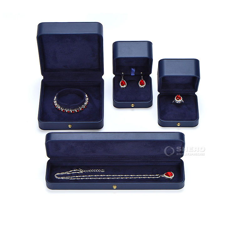 กล่องใส่เครื่องประดับหนัง PU สีน้ำเงิน พร้อมโลโก้สั่งทำ สำหรับแหวน จี้ สร้อยข้อมือ กำไล สร้อยคอ
