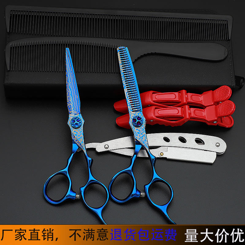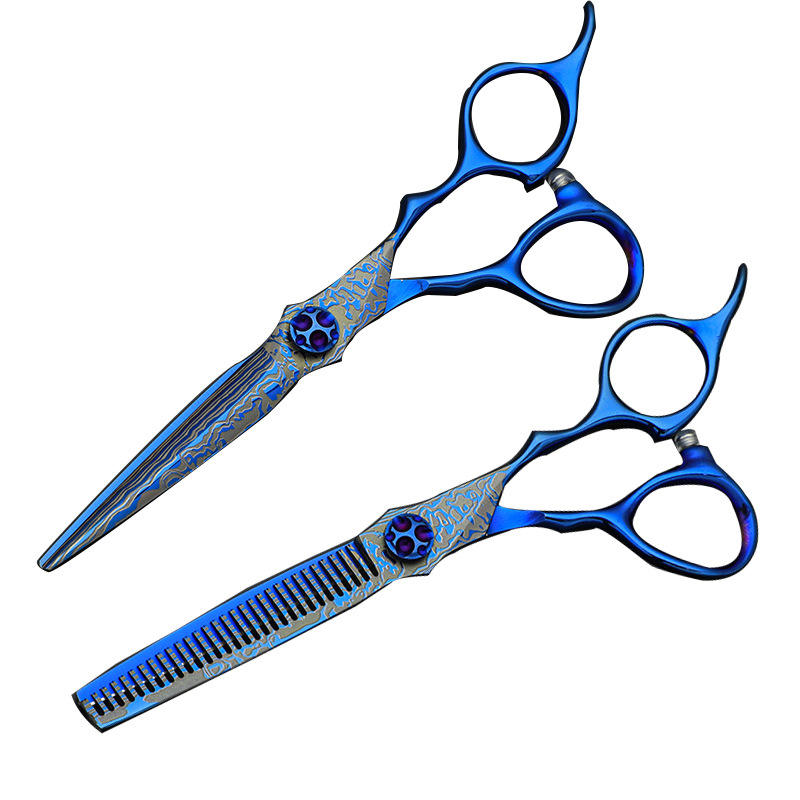 กรรไกรตัดผมมืออาชีพบลูดามัสกัสสแตนเลสด้ามยาว หนา 0.6 มม. สำหรับใช้ในร้านเสริมสวย