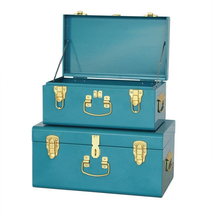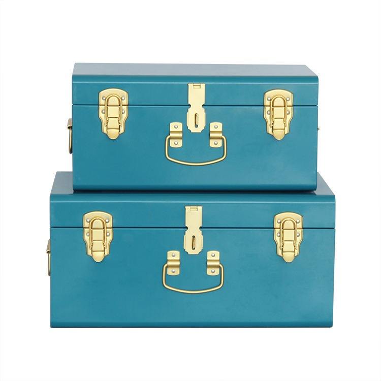 กล่องเก็บของสีน้ำเงินตกแต่งลาย พร้อมกุญแจทอง