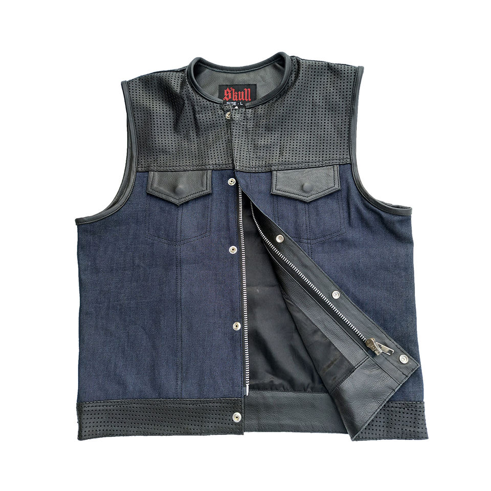 เสื้อกั๊กหนังผ้ายีนส์สีน้ำเงินพร้อมเสื้อกั๊กหนัง,เสื้อโค้ทเสื้อกั๊กสำหรับขี่มอเตอร์ไซค์