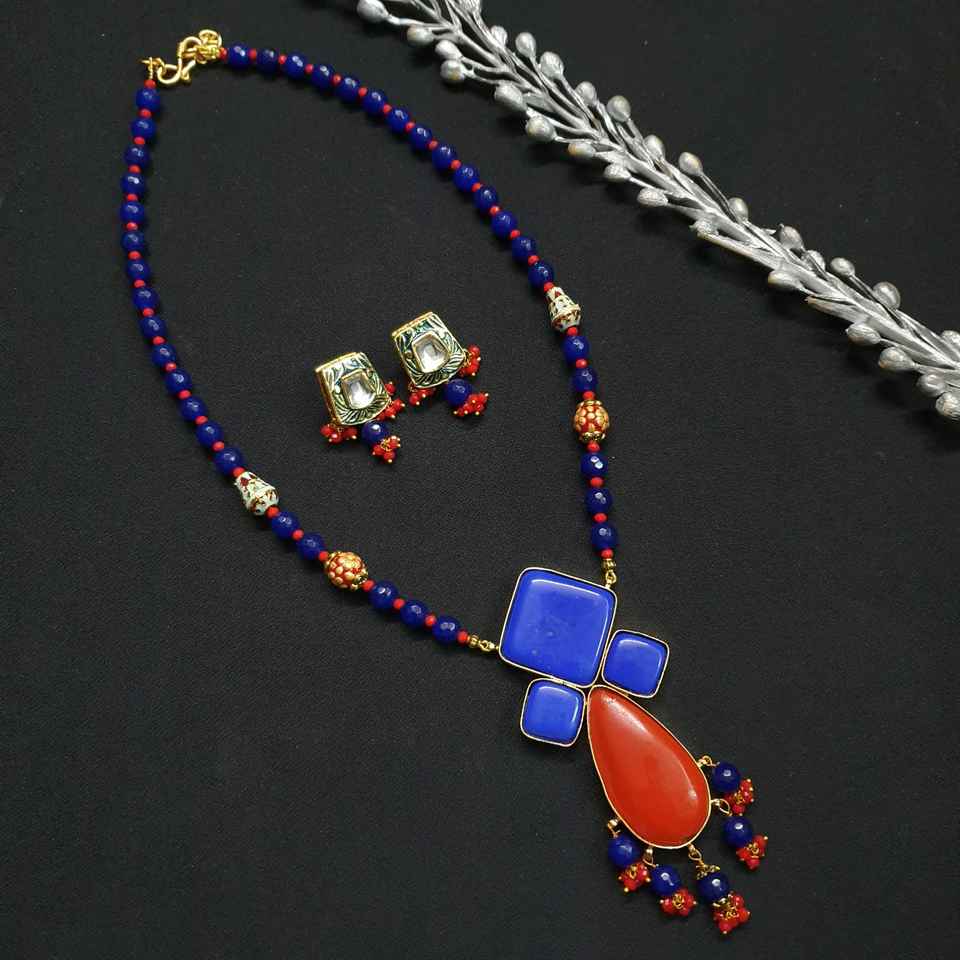 ชุดจี้ดีไซน์เนอร์สีน้ำเงินพร้อมต่างหูชุบทองประดับหินเพทายสไตล์วินเทจสำหรับเป็นของขวัญ