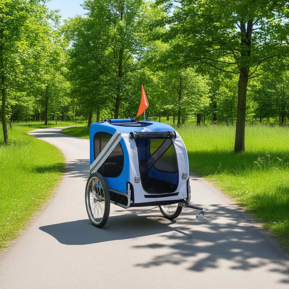 รถพ่วงจักรยานสำหรับสัตว์เลี้ยง Blue Dog รับน้ำหนักได้ 25 กก. พร้อมตาข่ายและซิปปิด สำหรับการเดินทางกลางแจ้ง