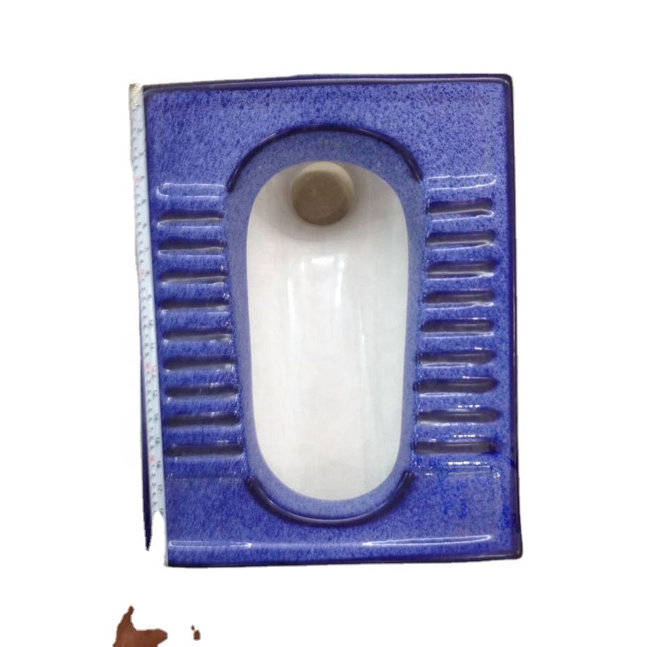 กระทะนั่งยองเซรามิกสีฟ้าสองสีสุขภัณฑ์เกรดหนึ่งสำหรับห้องน้ำอินเดียและแอฟริกา