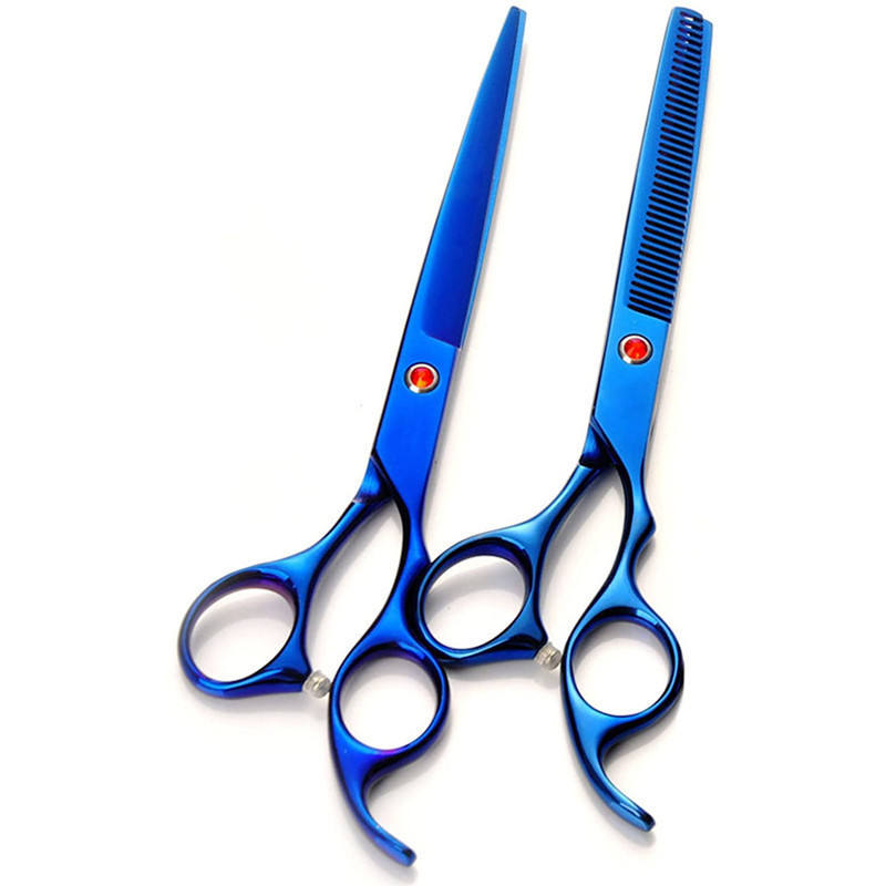 กรรไกรตัดแต่งขนสัตว์เคลือบสีฟ้า 7 นิ้ว สแตนเลสสตีล โค้งงอ สำหรับแมว ชุดอุปกรณ์กรูมมิ่งอเนกประสงค์