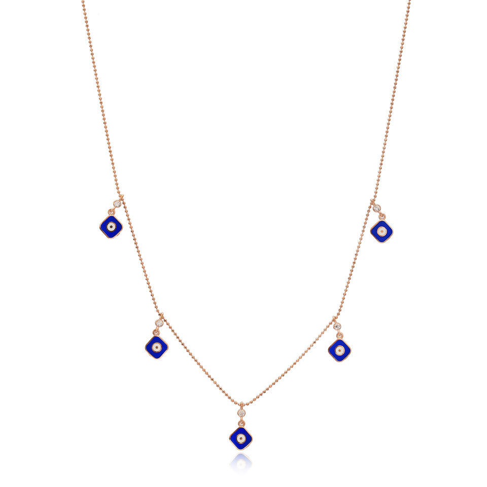 Blue Enamel Square Charm Shaker Design Necklace Turkish Handmade Wholesale 925 Sterling Silver Jewelry