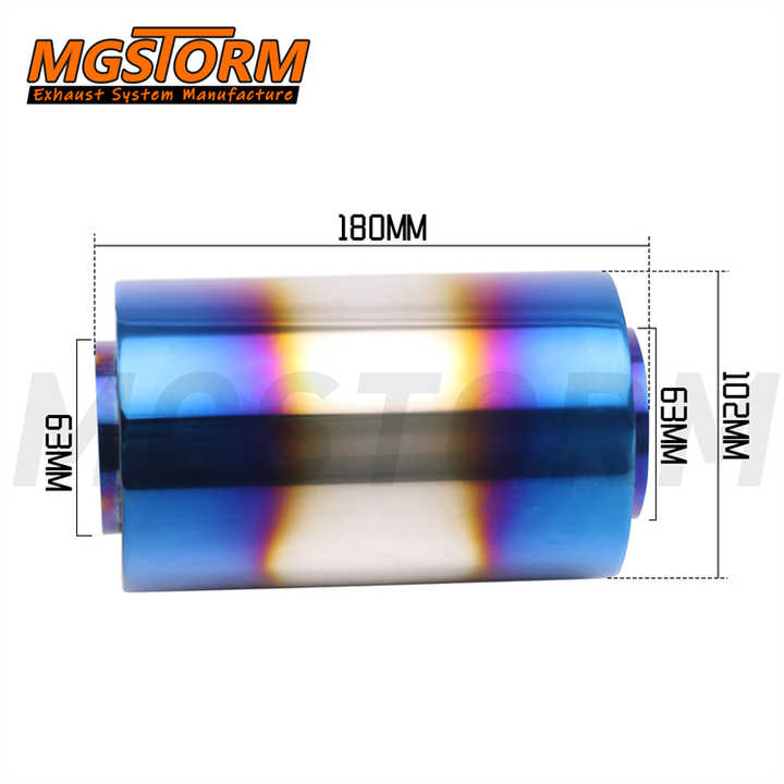 ท่อไอเสียสีน้ำเงิน ขนาดเส้นผ่านศูนย์กลาง 63 มม. ช่วงตัด 102 มม. ตัวท่อ 180 มม. ผลิตจากสแตนเลส พร้อมตัวเก็บเสียงและเรโซเนเตอร์