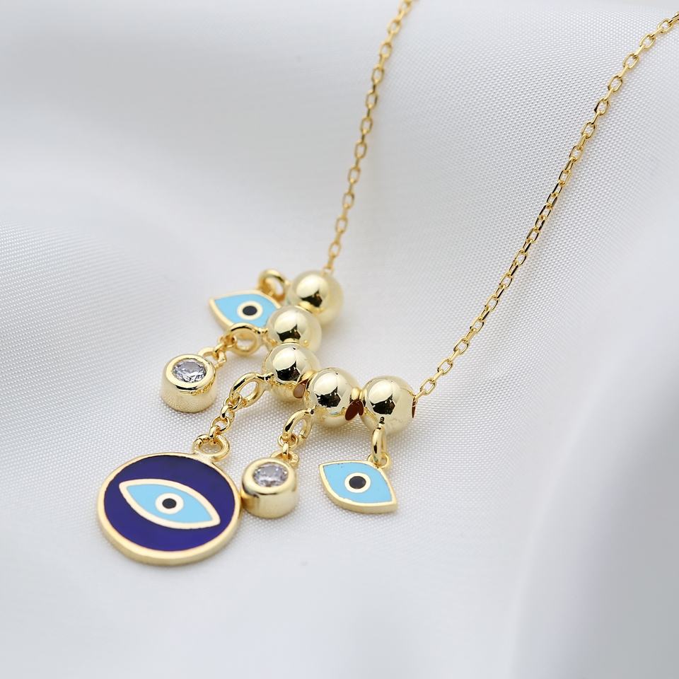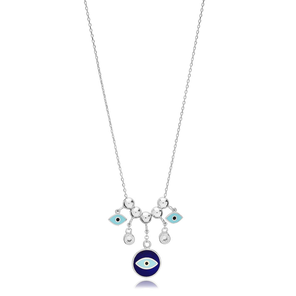 สร้อยคอลูกปัดสีฟ้าเคลือบเงาทำด้วยมือเครื่องประดับเงินสเตอร์ลิงทำจาก925