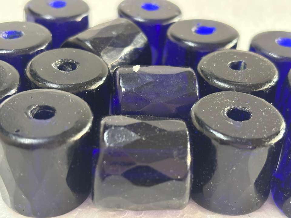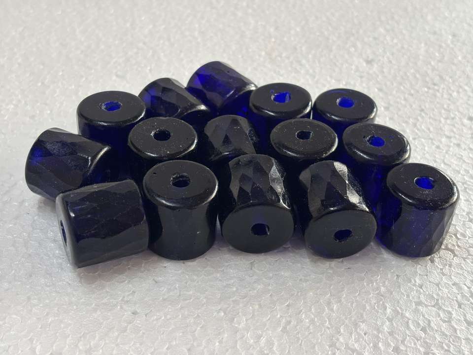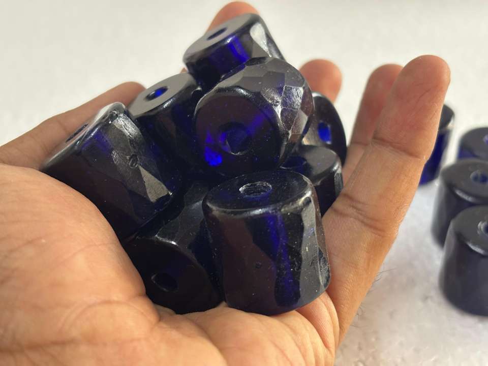 ลูกปัดแก้วรัสเซียสีน้ำเงินเหลี่ยมเพชรพลอย ขนาด 25 มม. รูใหญ่ สำหรับเครื่องประดับชนเผ่า ดีไซน์สไตล์พื้นเมือง ใช้สำหรับงานฝีมือ บรรจุกล่อง ลายต้นสน