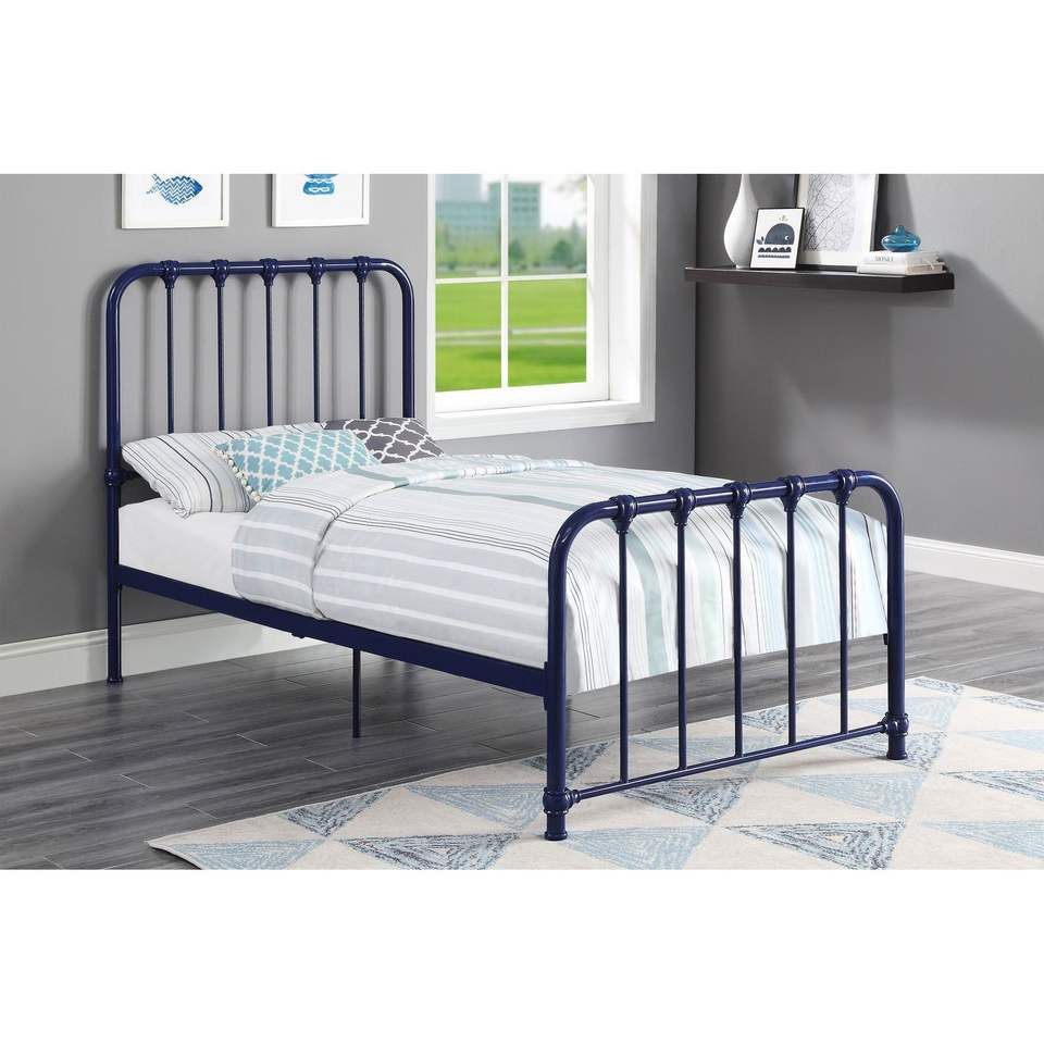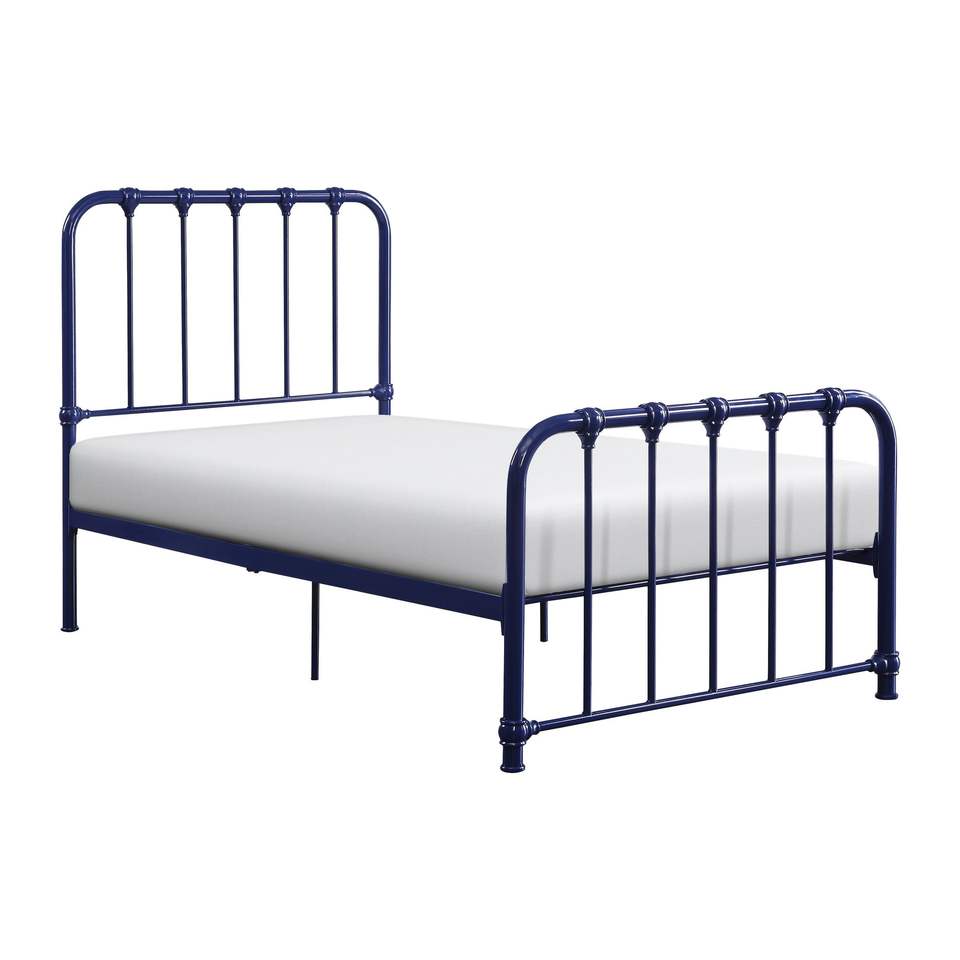 เตียงคู่แบบแพลตฟอร์มโลหะสีน้ำเงินในกล่อง