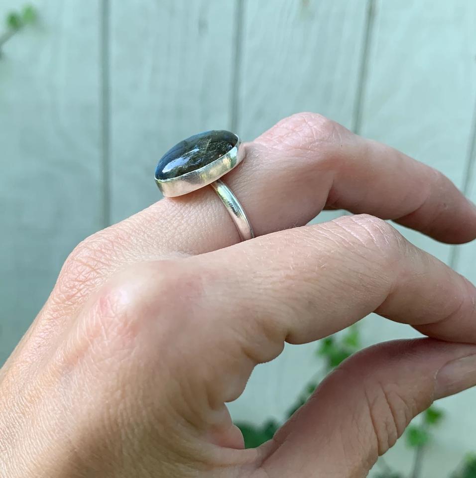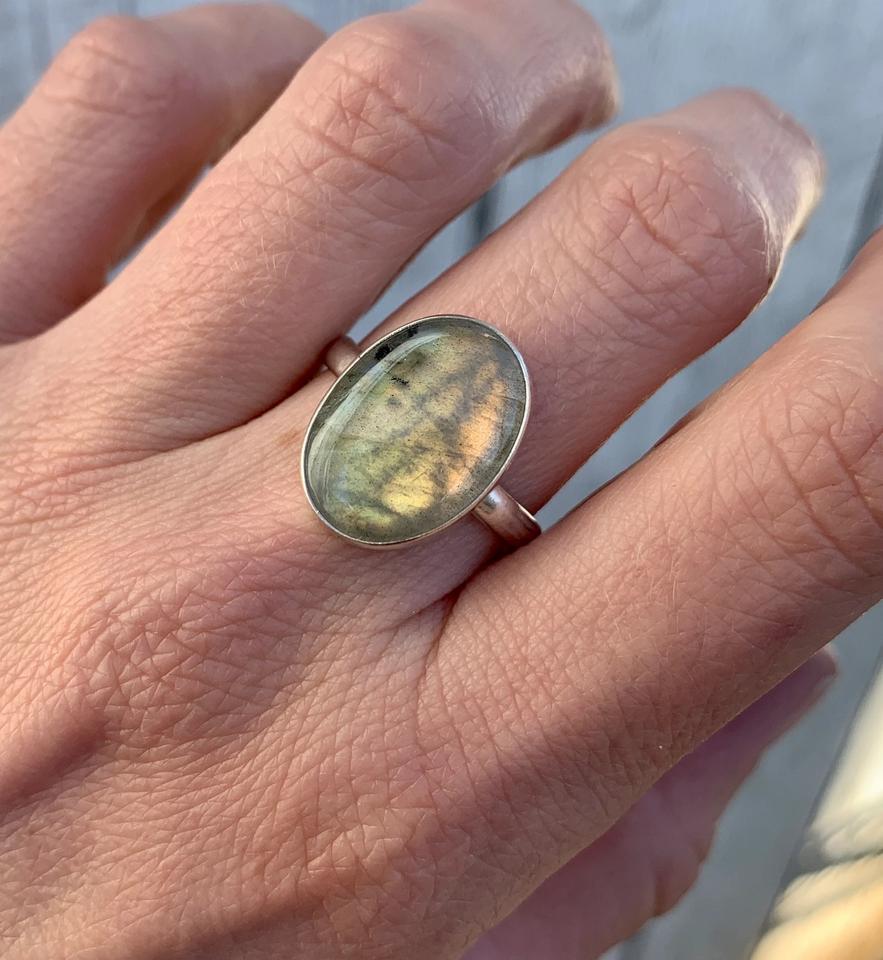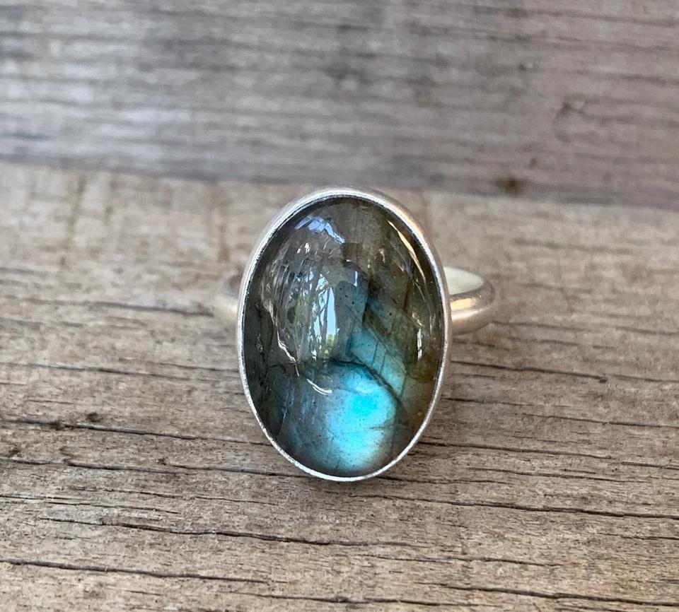 แหวนแลบราโดไรต์สีฟ้าเพลิงทำด้วยมือเงิน925อัญมณีลาบราดอไรต์ธรรมชาติทำด้วยมือของขวัญแหวนแต่งงานสำหรับผู้หญิง