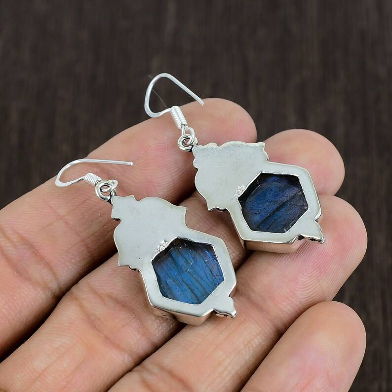 ต่างหูหินลาบราดอไรต์สีน้ำเงิน ประดับเงินแท้ 925 ทำมือ ดีไซน์น่ารัก หรูหรา เหมาะเป็นของขวัญวันครบรอบ