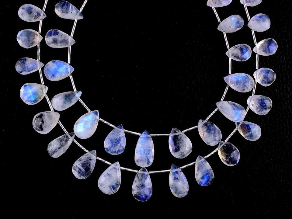 พลอยมูนสโตนสีน้ำเงินธรรมชาติ คุณภาพระดับ AAA รับรองโดยผู้ตรวจสอบอิสระ รูปทรงลูกแพร์เหลี่ยมเพชรพลอย ประกายระยิบระยับ