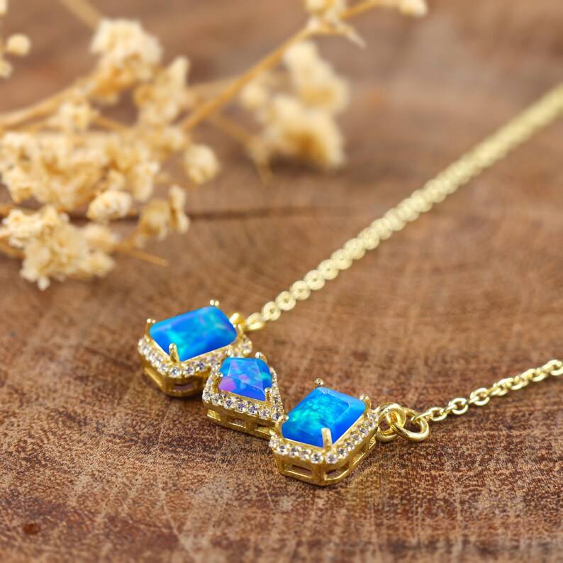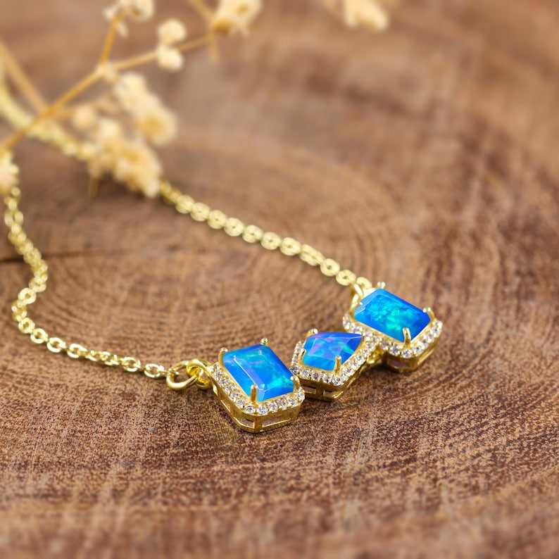 จี้โอปอลไฟสีน้ำเงิน สร้อยคอผู้หญิง โอปอลเอธิโอเปีย หินประจำเดือนตุลาคม สไตล์มินิมอล เงินแท้ 925 ชุบทอง 14K ได้รับการรับรองจาก IGI