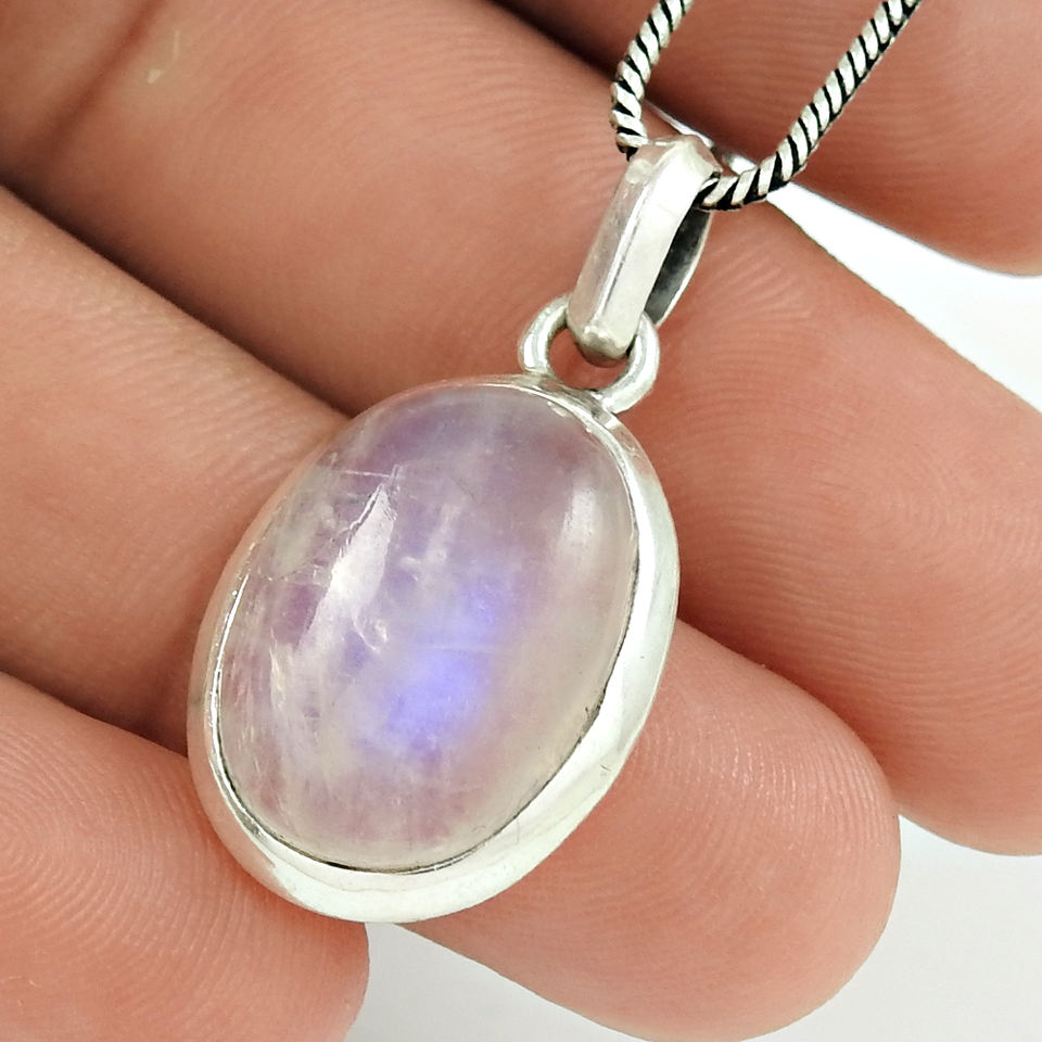 จี้925มูนสโตนสีรุ้งธรรมชาติสีน้ำเงินเข้มจี้เงินทำมือน้ำหนักเบา100% เครื่องประดับขายส่ง