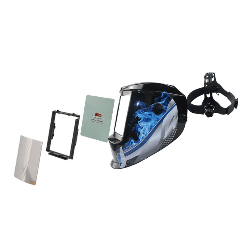 หน้ากากเชื่อมสีฟ้าขนาดใหญ่พิเศษ 4 จุดเชื่อมต่อเซ็นเซอร์ DIN5-DIN13 ปรับแสงอัตโนมัติด้วยพลังงานแสงอาทิตย์ สำหรับเชื่อม TIG MIG MMA งานเจียร สีสมจริง อุปกรณ์เชื่อม