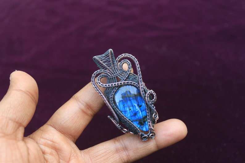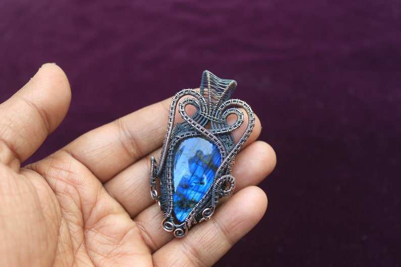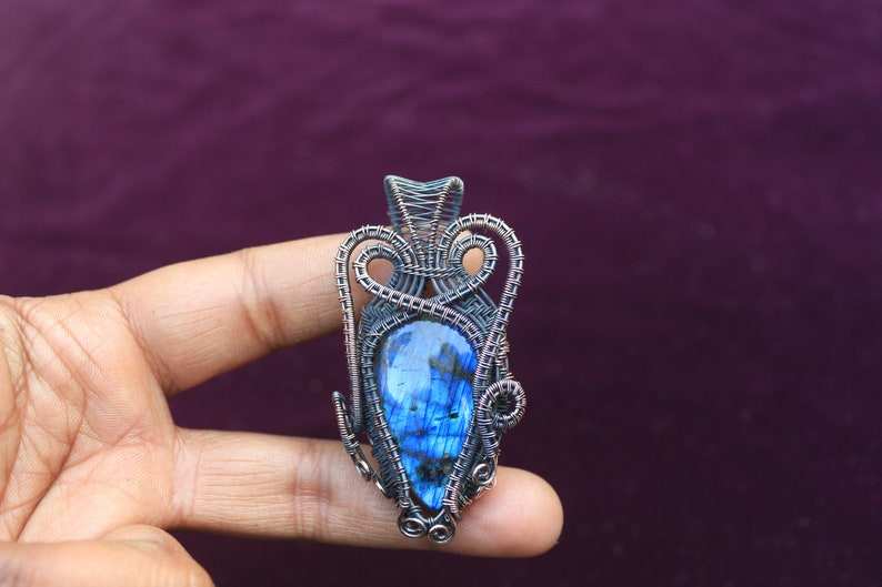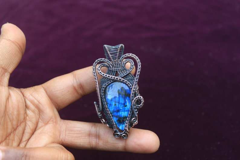 สายจี้ทองแดงลาบราดอไรต์แฟลชสีน้ำเงินห่อเครื่องประดับทำมือ