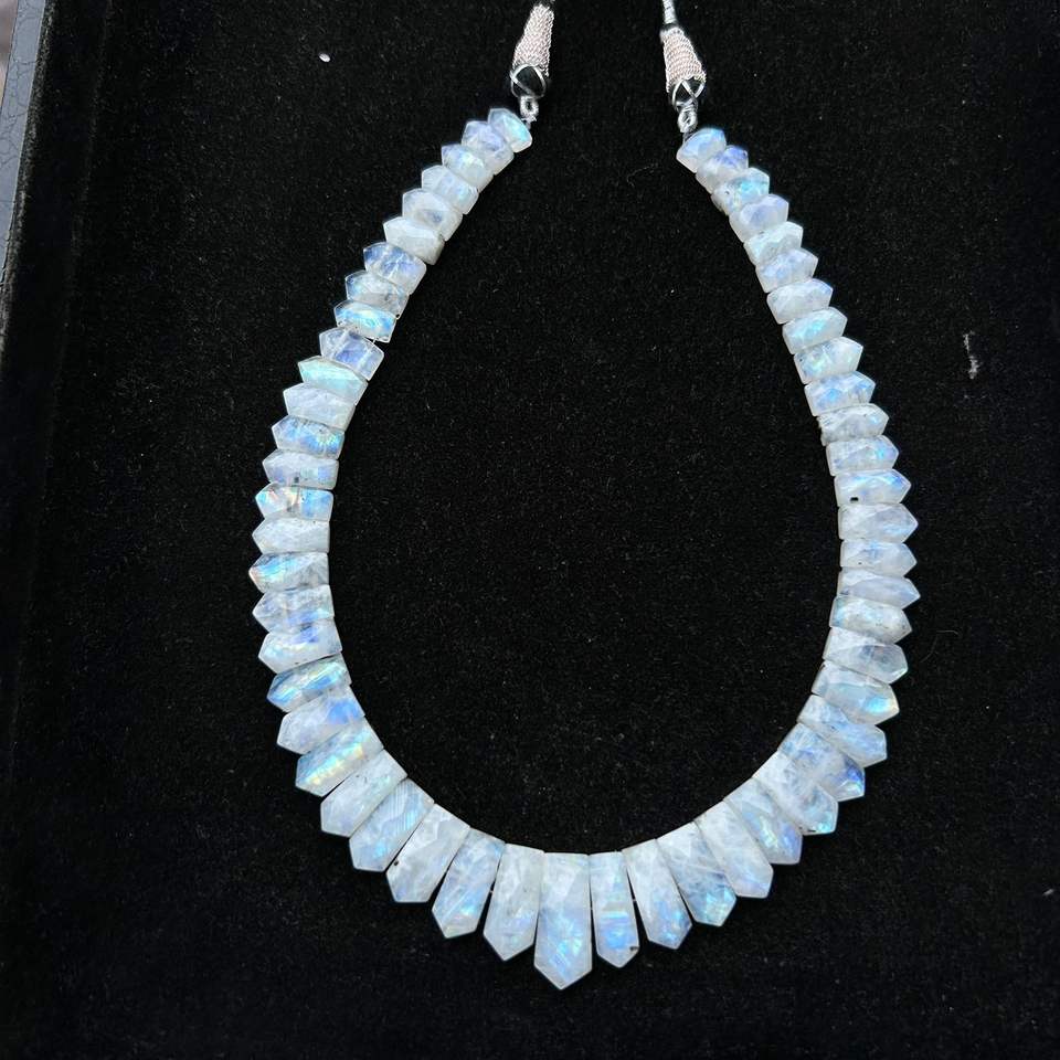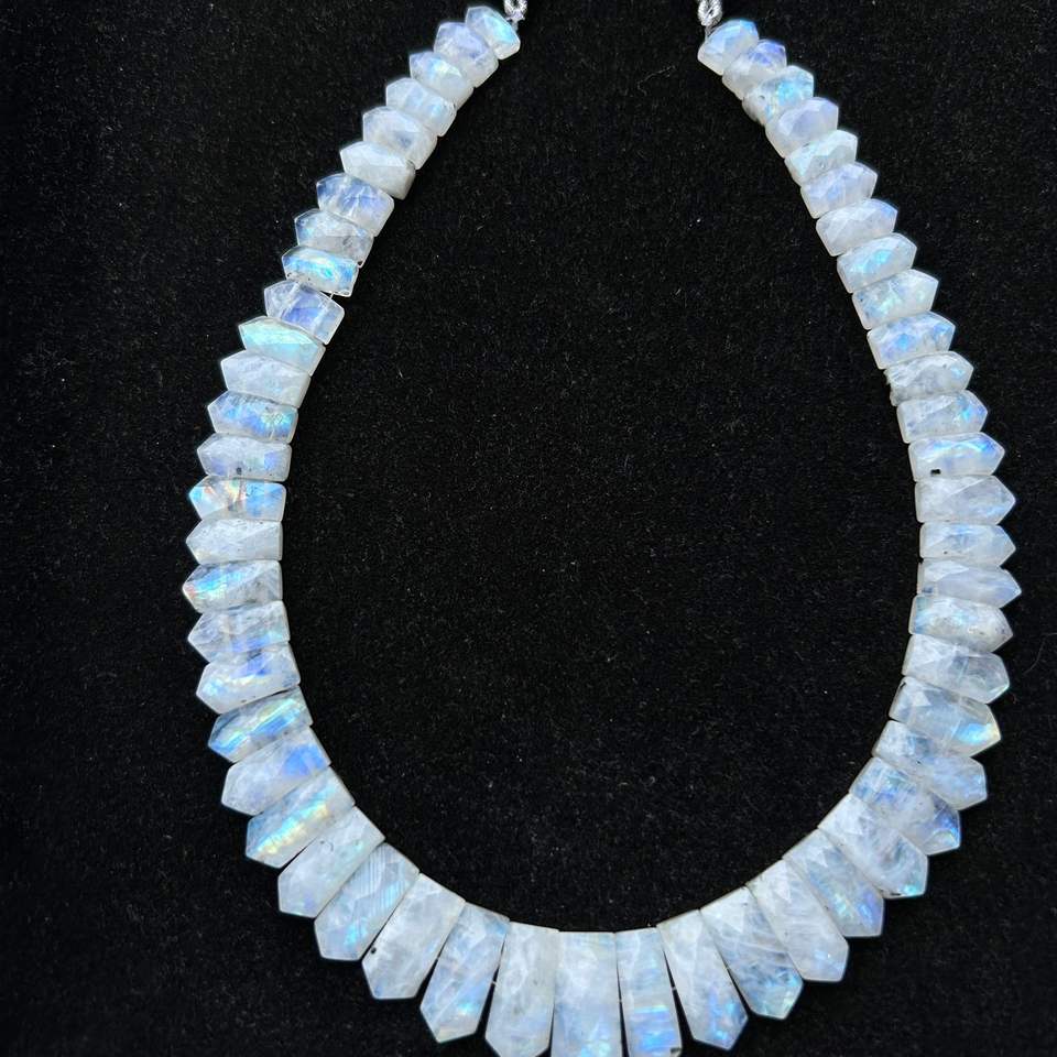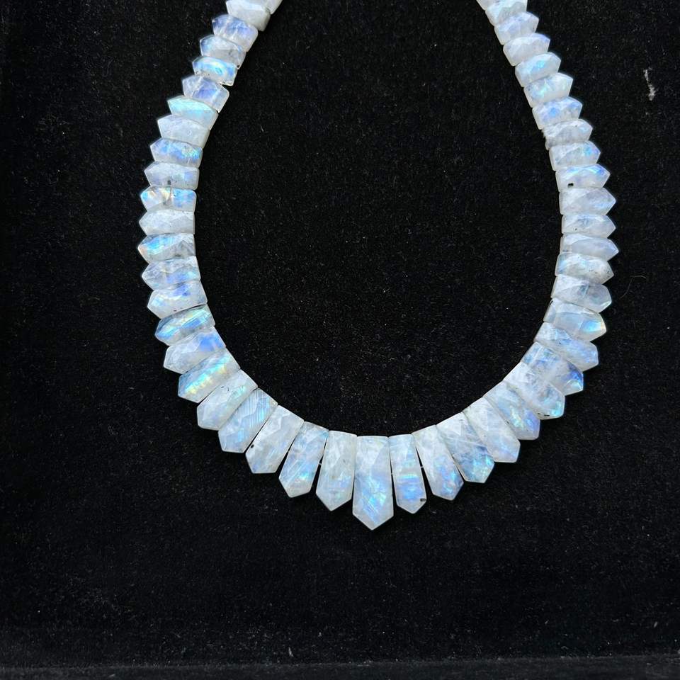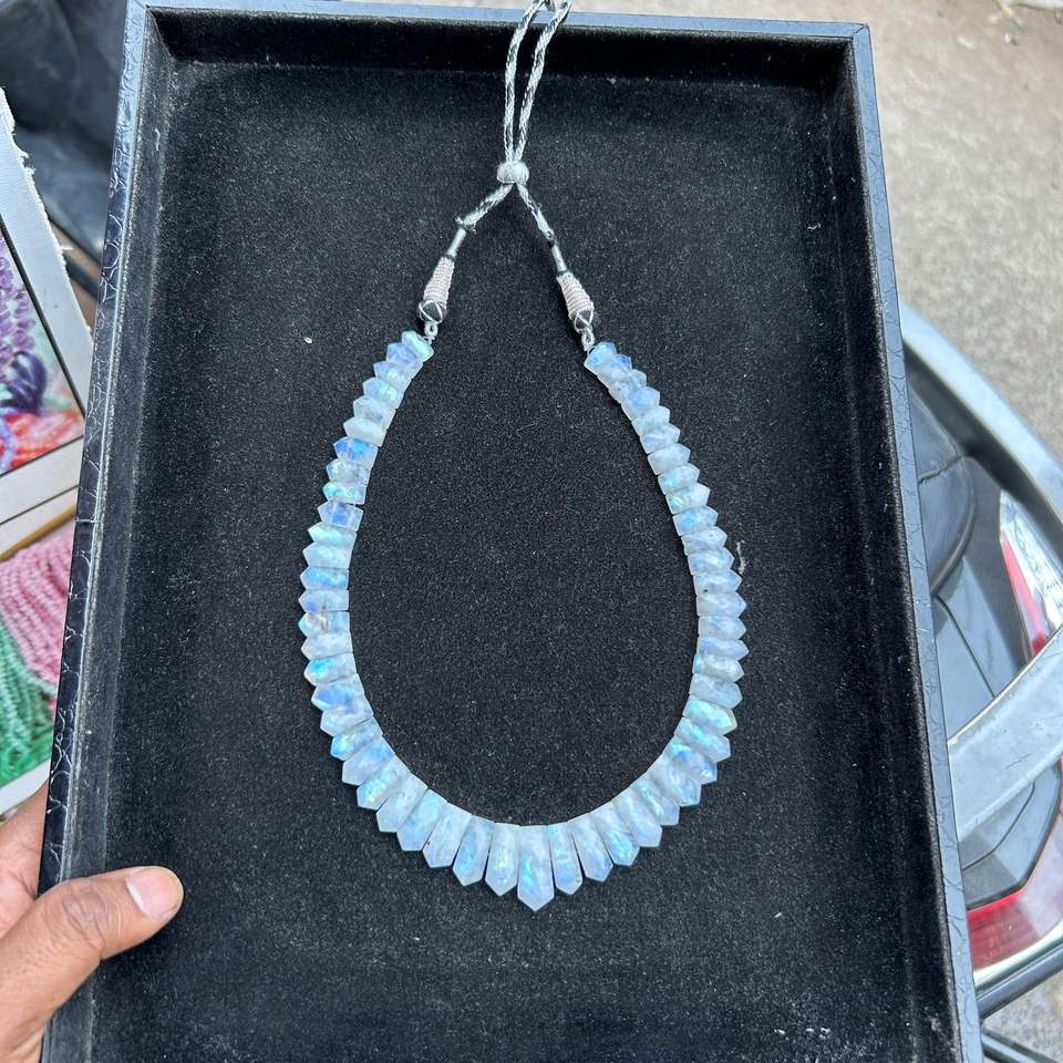 Blue Flash Rainbow Moonstone Beaded Necklace,