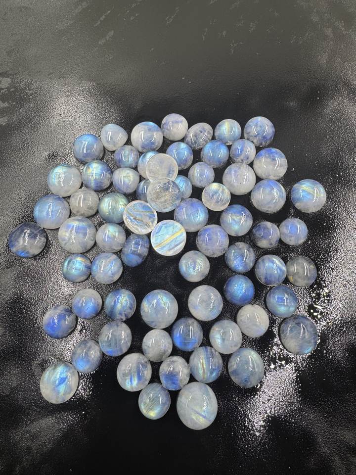 พลอยมูนสโตนสีน้ำเงินประกายอัญมณีหลวมรูปร่างเรียบ10-20มม. สำหรับทำเครื่องประดับขายส่ง