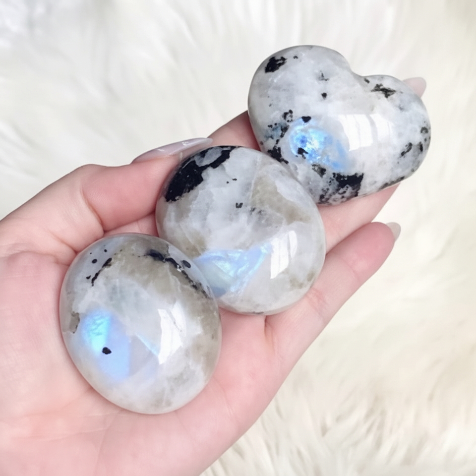 หินมูนสโตนสีรุ้งแวววาวเคลือบเงาพลอยสีขาวสำหรับตกแต่งบ้านของฮวงจุ้ย