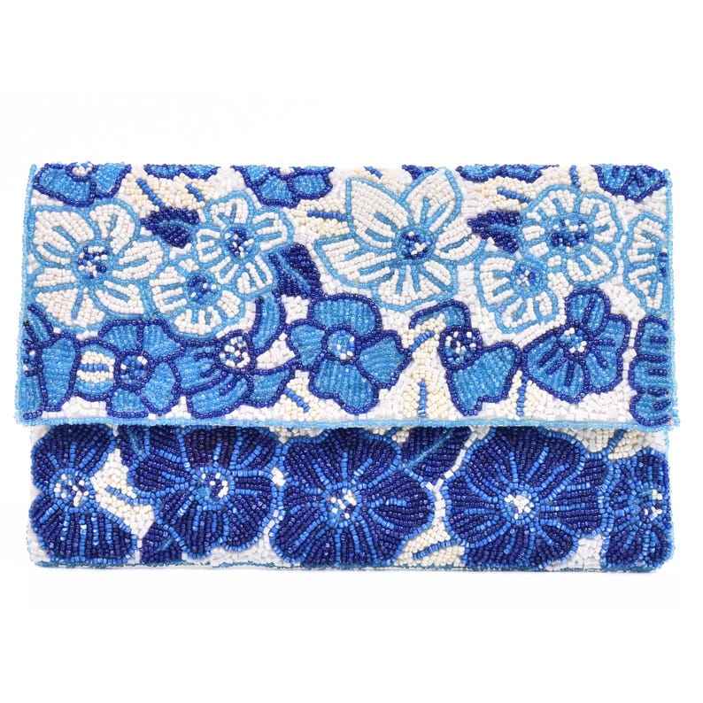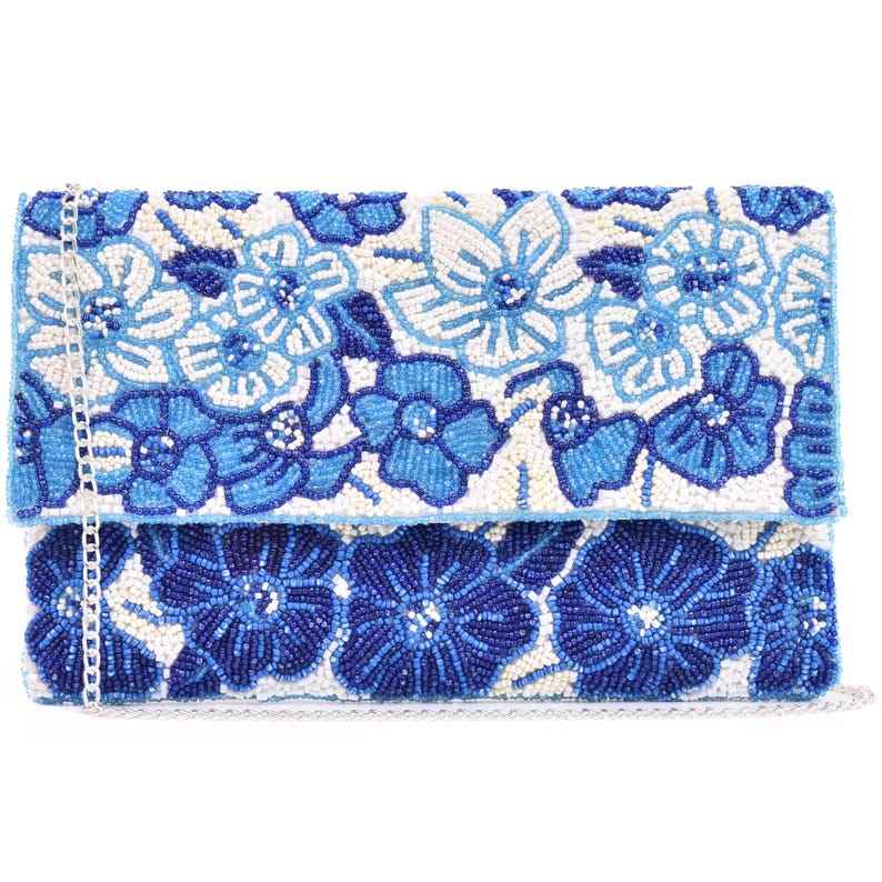 คลัทช์ลูกปัดดอกไม้สีฟ้า, กระเป๋าคลัทช์ลูกปัดเม็ด, กระเป๋าถือ Boho, กระเป๋า Crossbody, คลัทช์เย็น, คลัทช์ทุกวัน, ของขวัญสำหรับ