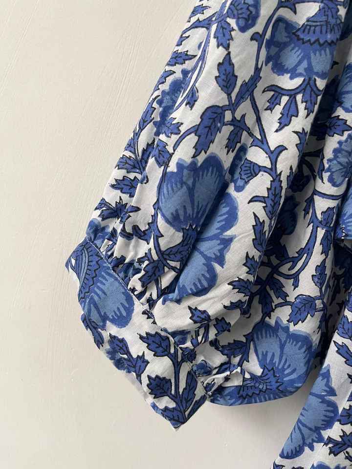 ชุดเดรสผ้าฝ้ายพิมพ์ลายดอกไม้สีฟ้า, ชุดเดรสมิดิสไตล์โบฮีเมียนชุดเดรสผ้าฝ้ายทำมือสไตล์โบฮีเมียนชุดสไตล์โบฮีเมียนชุดเดรสผ้าฝ้ายอินเดียทำด้วยมือน้ำหนักเบาสำหรับฤดูร้อน